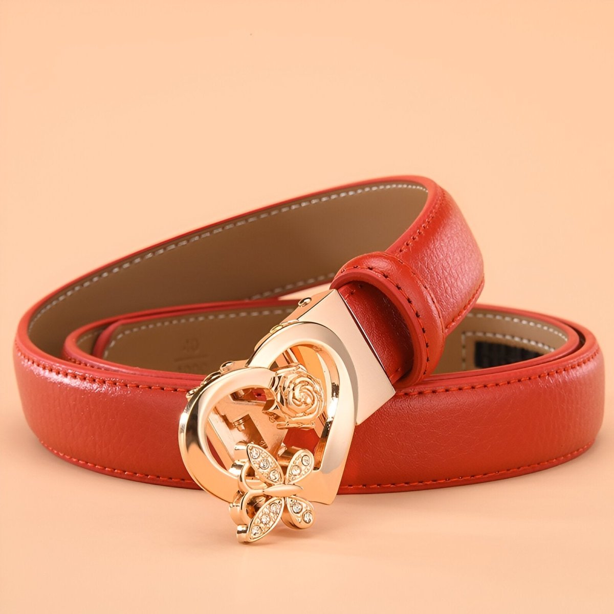 Sortez du lot avec la ceinture automatique en cuir à boucle coeur & papillon, modèle Adela