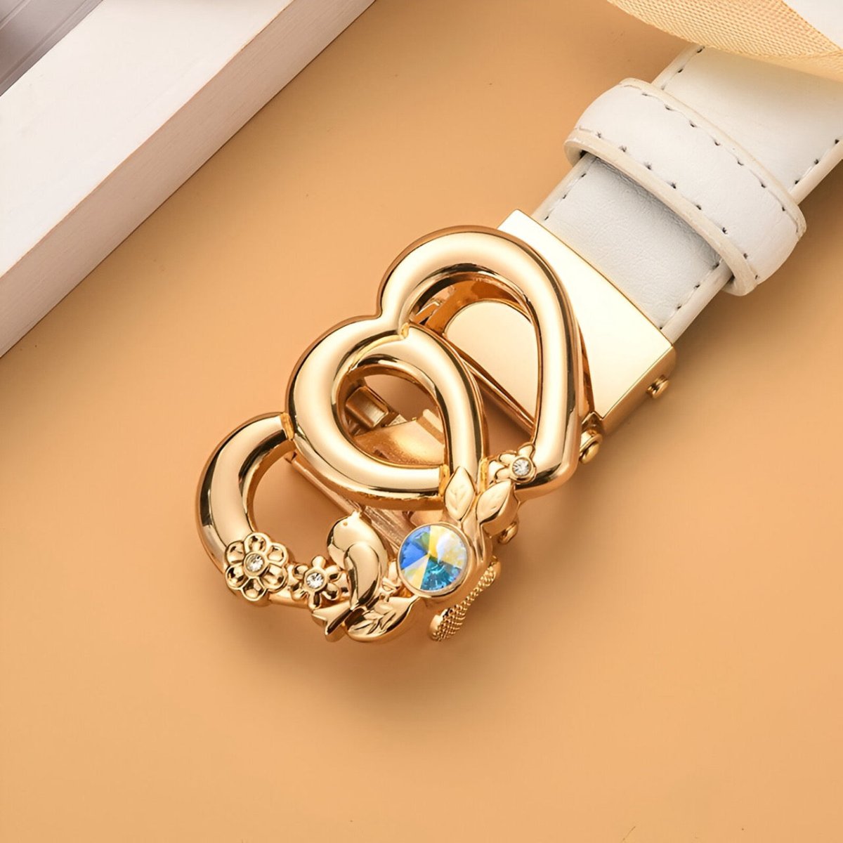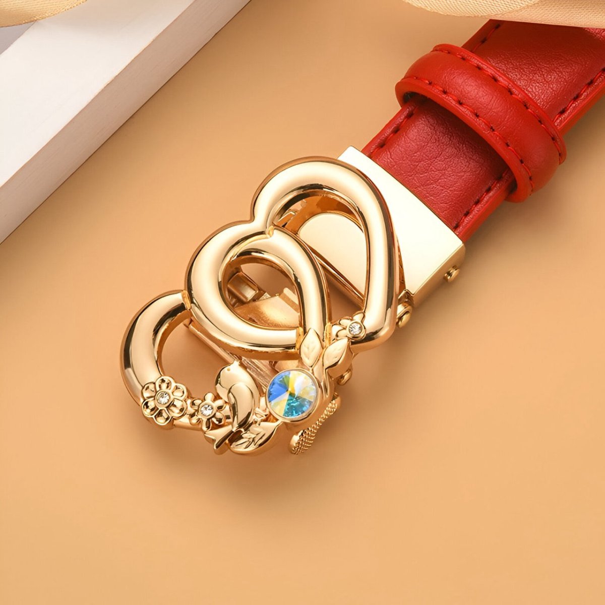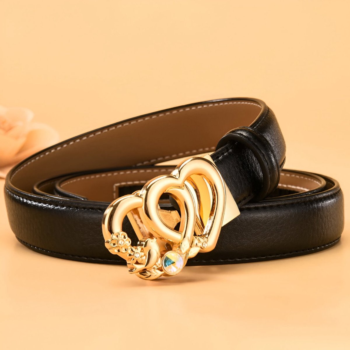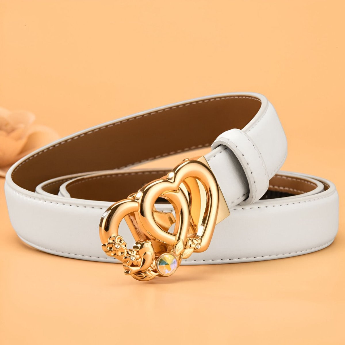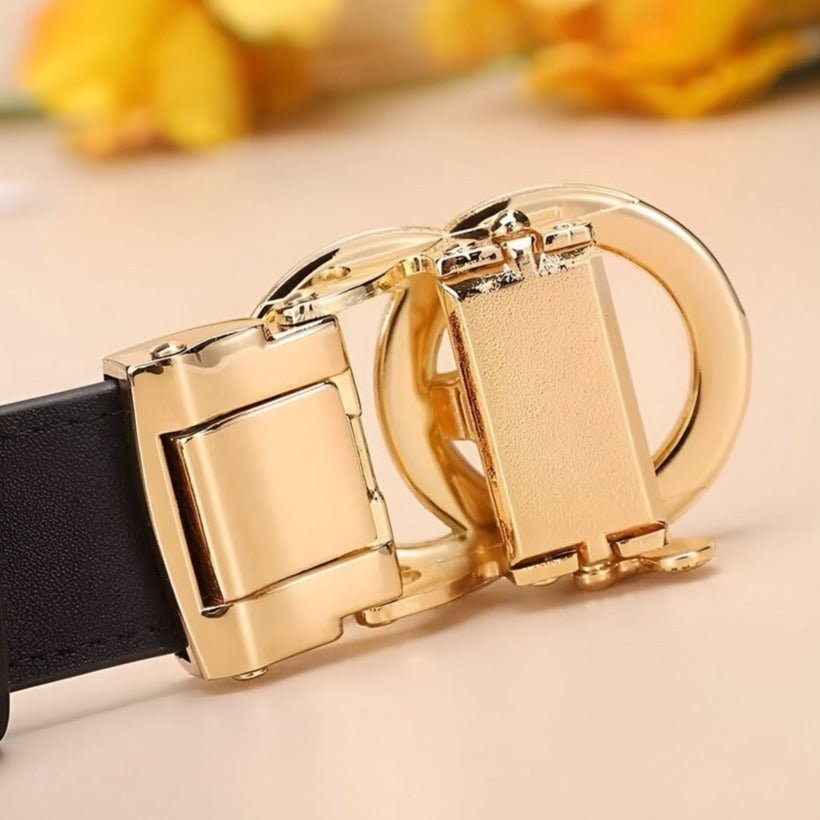Ceinture automatique en cuir à boucle double coeur pour femme, modèle Kiara : élégance et modernité
