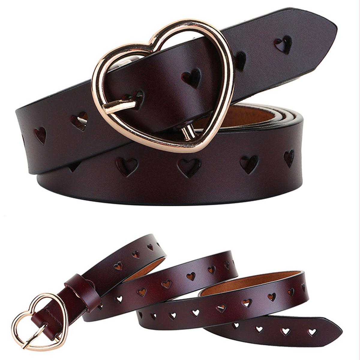 Ceinture avec boucle en coeur, en cuir ajourée, pour femme, modèle Olivia