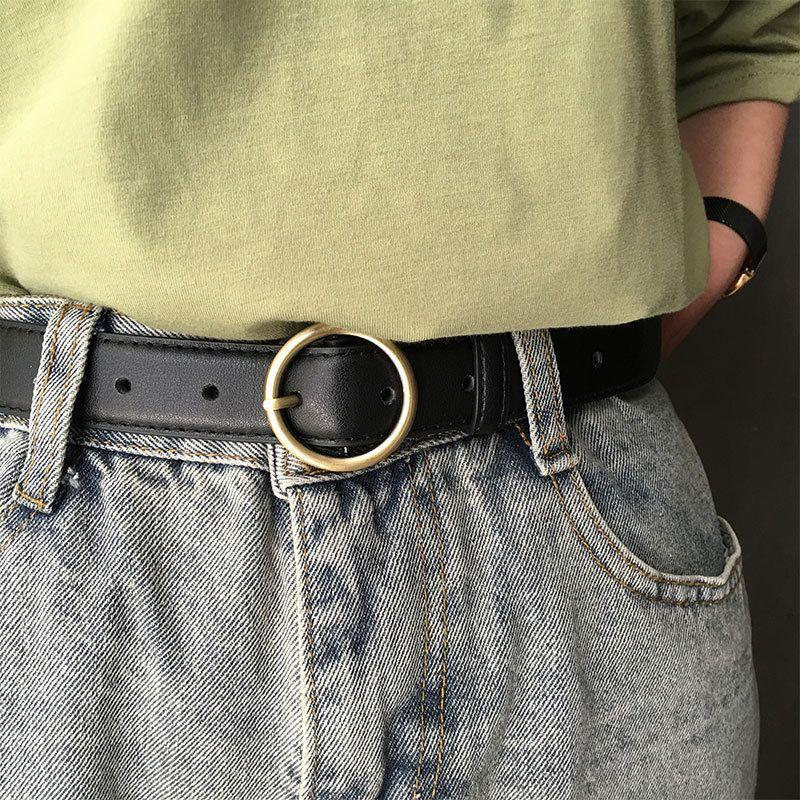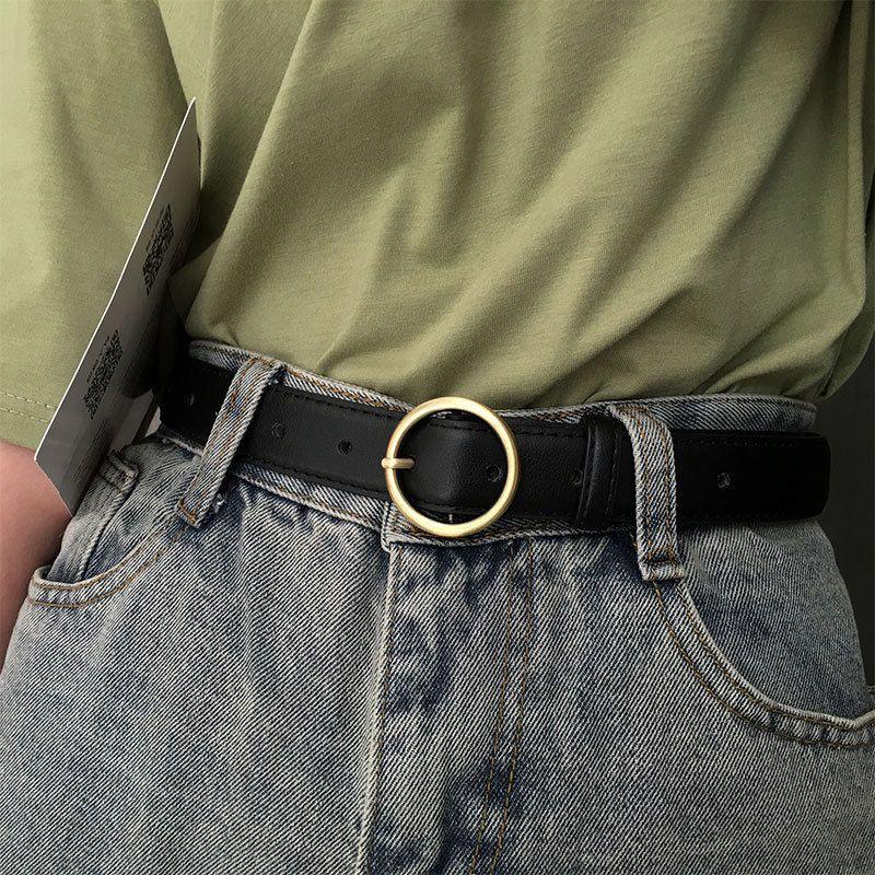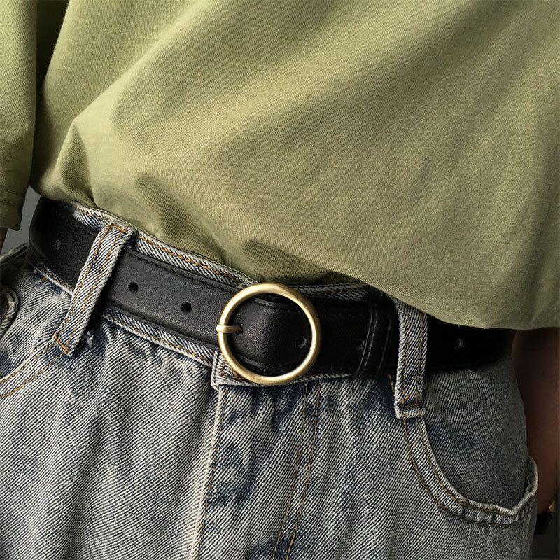 Ceinture classique pour femme à boucle ronde dorée, disponible en grande taille, modèle Odile pour un style intemporel