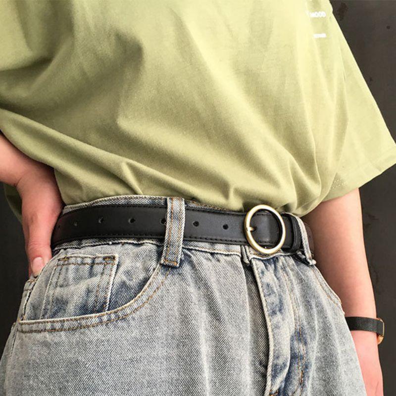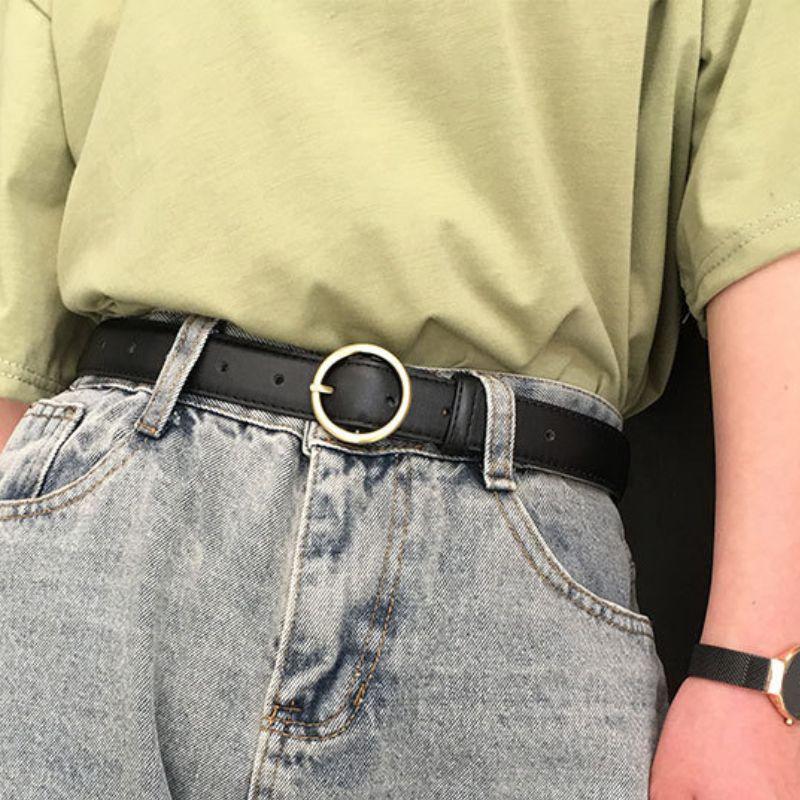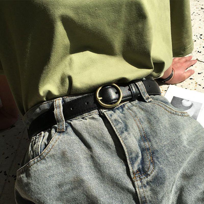 Ceinture classique pour femme à boucle ronde dorée, disponible en grande taille, modèle Odile : un accessoire polyvalent