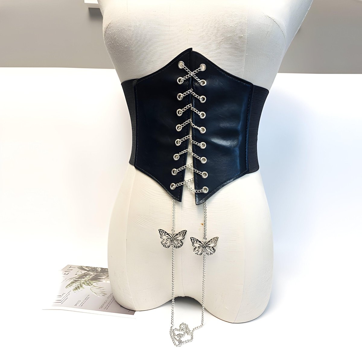 Maîtrisez votre élégance avec la Ceinture corset avec chaîne papillons, modèle Molly
