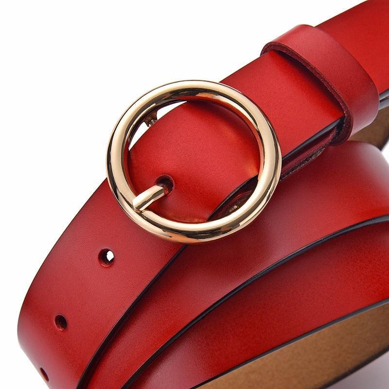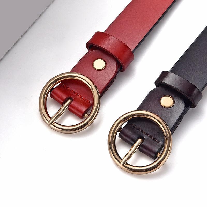 Une qualité exceptionnelle avec la ceinture en cuir à boucle ronde pour femme, modèle Khatia