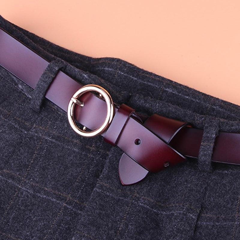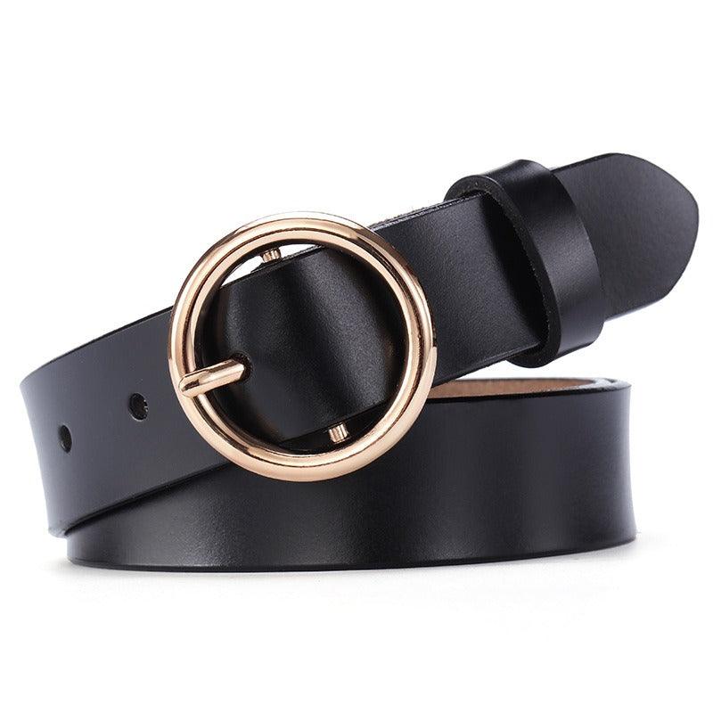 Une polyvalence incroyable avec la ceinture en cuir à boucle ronde pour femme, modèle Khatia