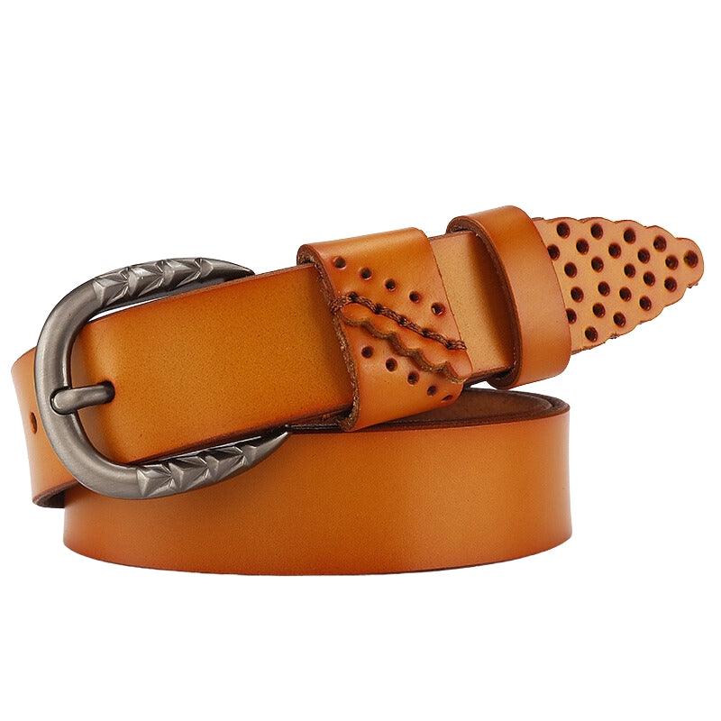 Ceinture en cuir détails ajourés pour femme boucle à motifs géométriques, modèle Dina : l’élégance du cuir travaillé