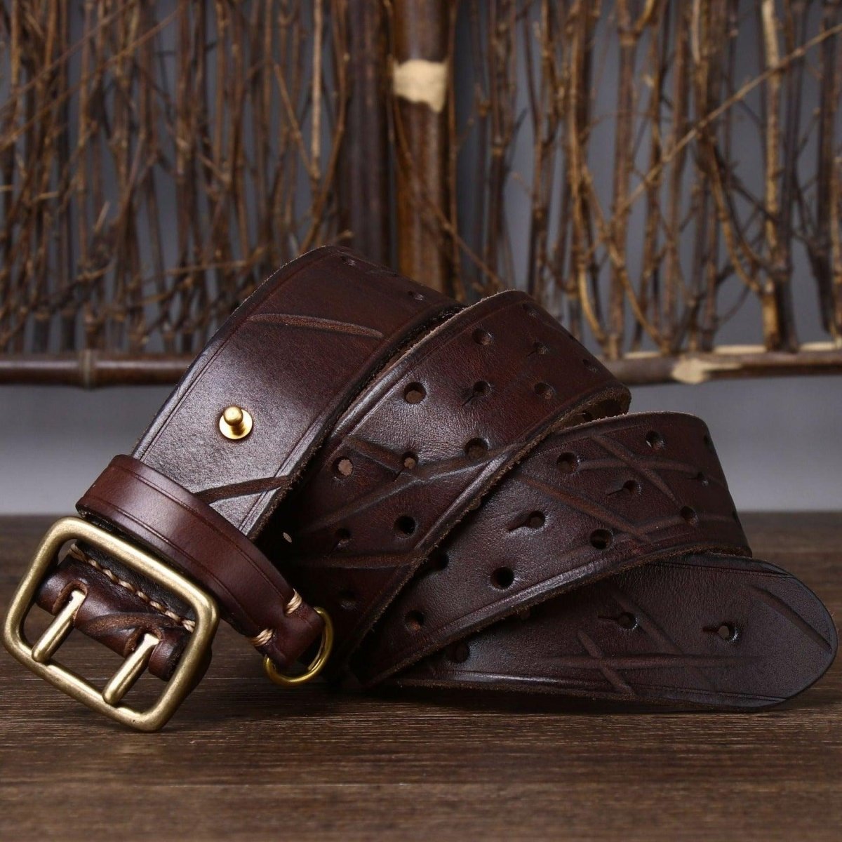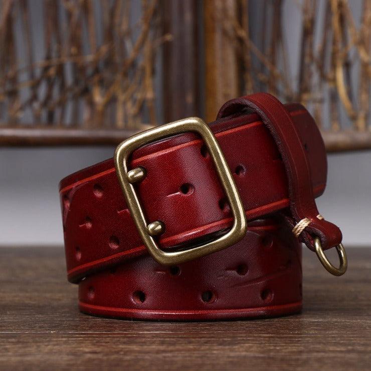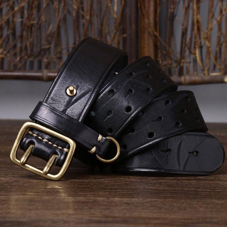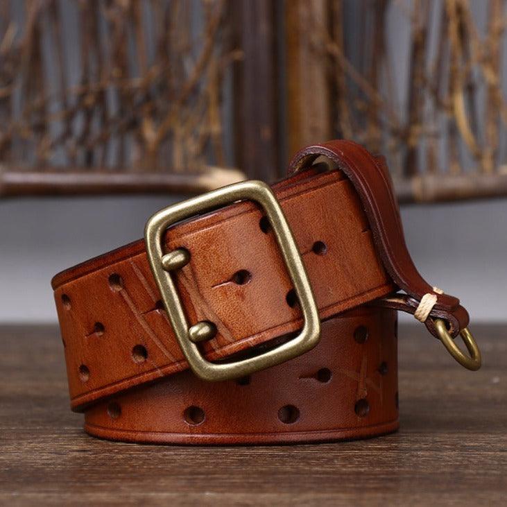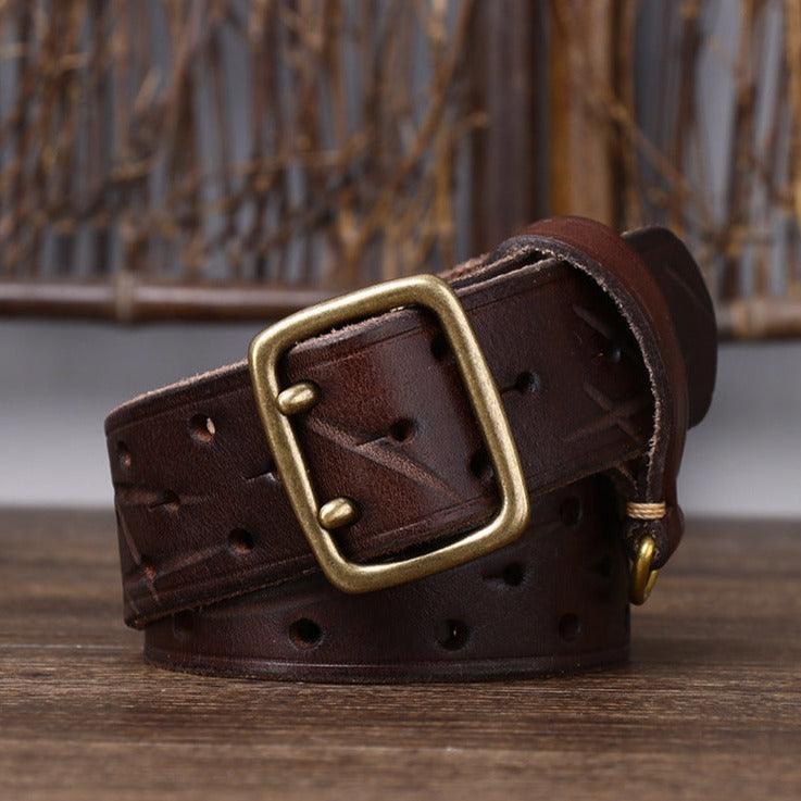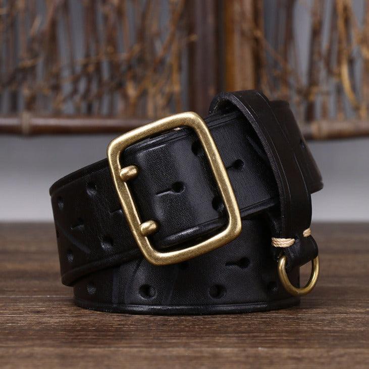 Sublimez votre style avec la ceinture en cuir, double ardillon, Osomache, alliant élégance et fonctionnalité.
