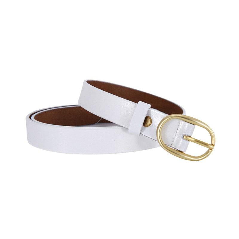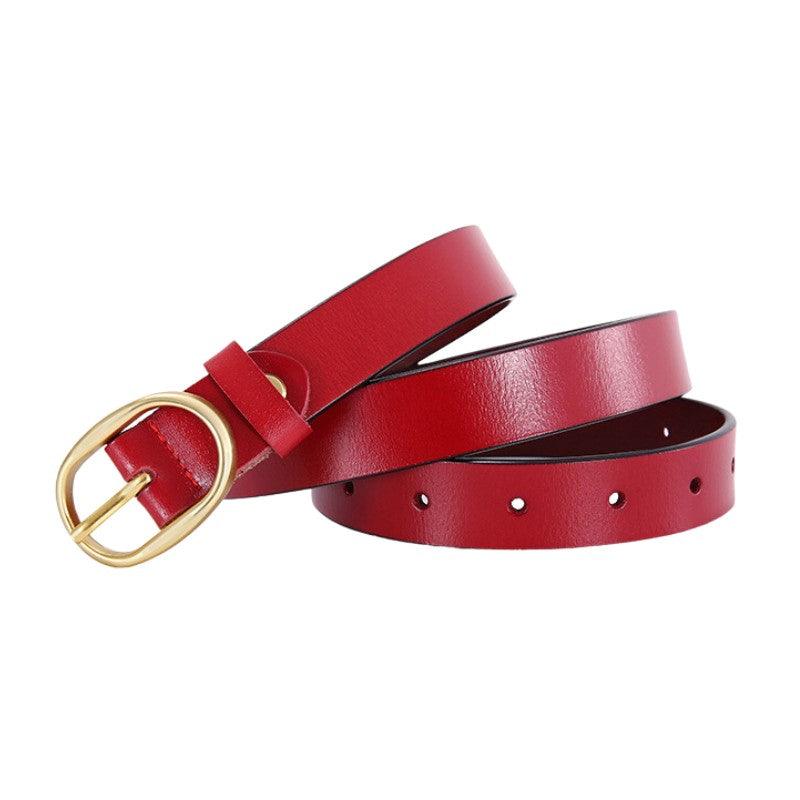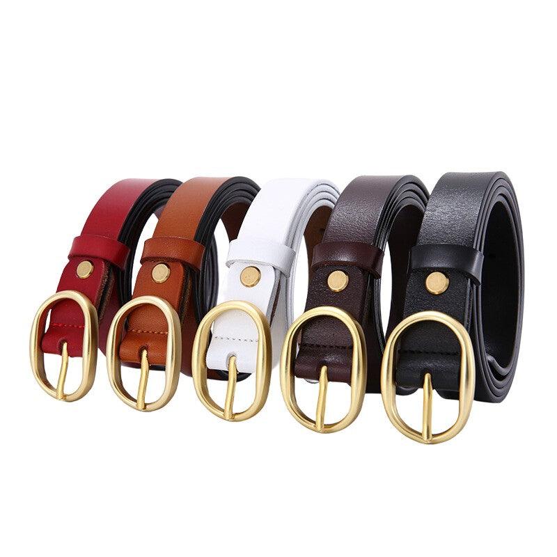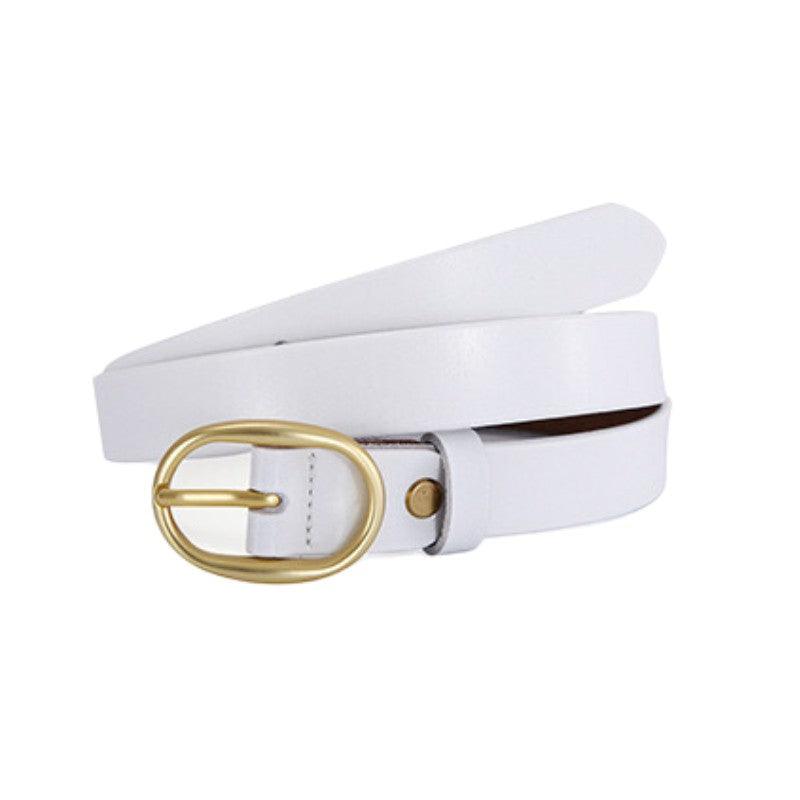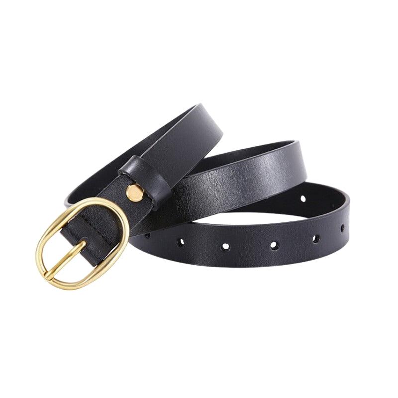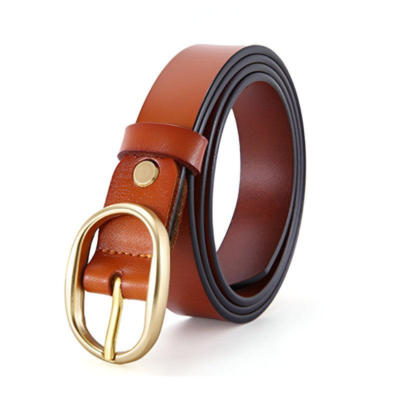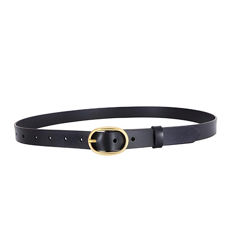 Ceinture en cuir lisse boucle ovale dorée pour femme, modèle Fiona : l’élégance au féminin