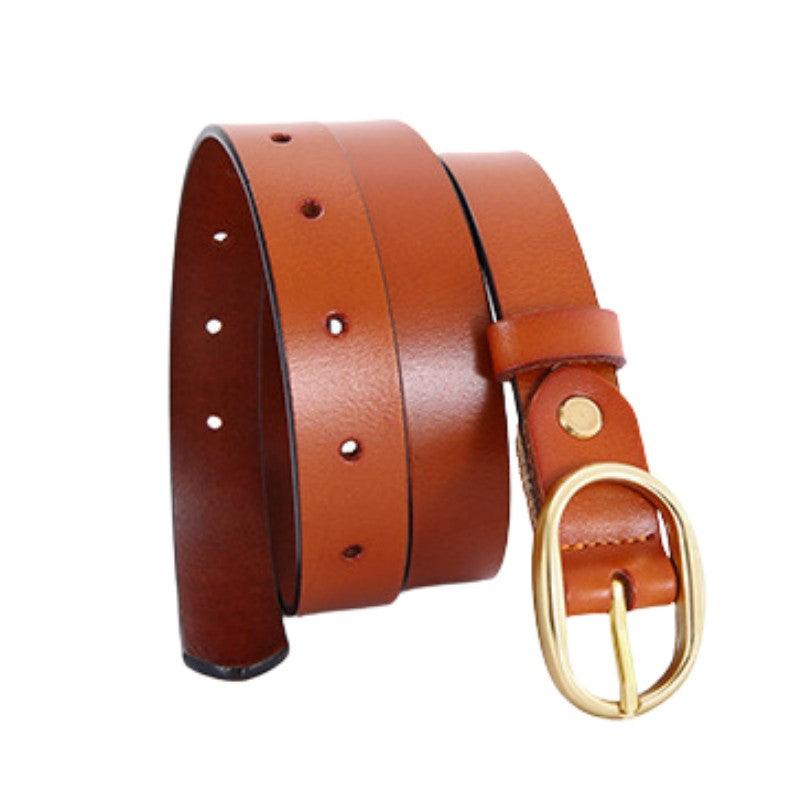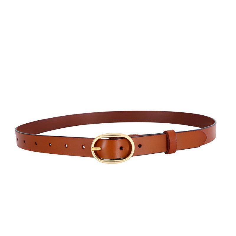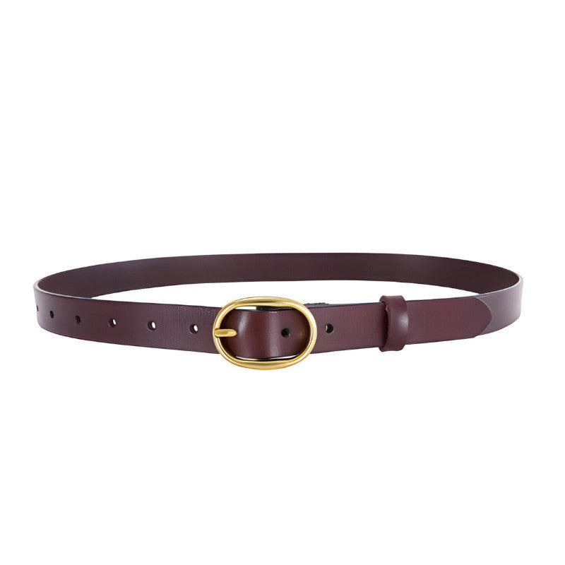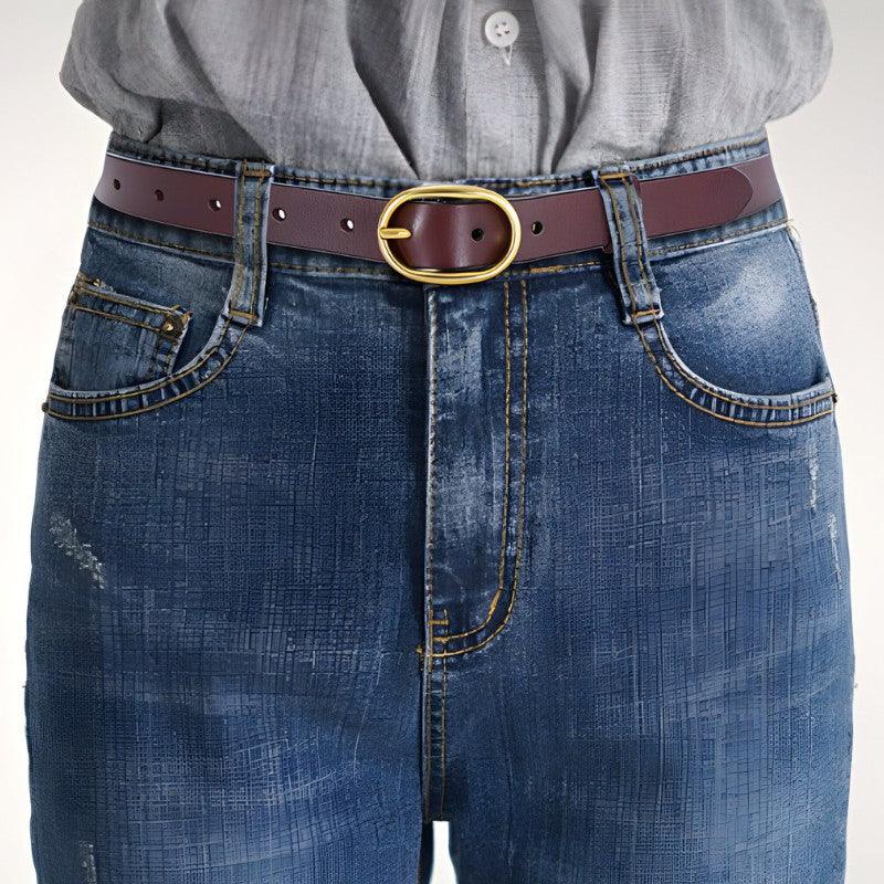 Transformez votre style avec la Ceinture en cuir lisse boucle ovale dorée pour femme, modèle Fiona