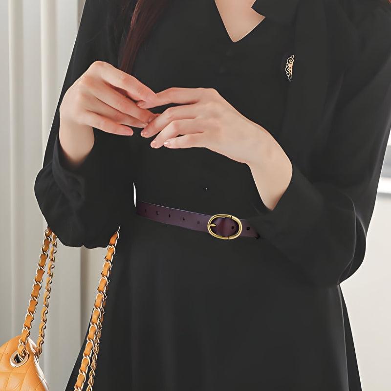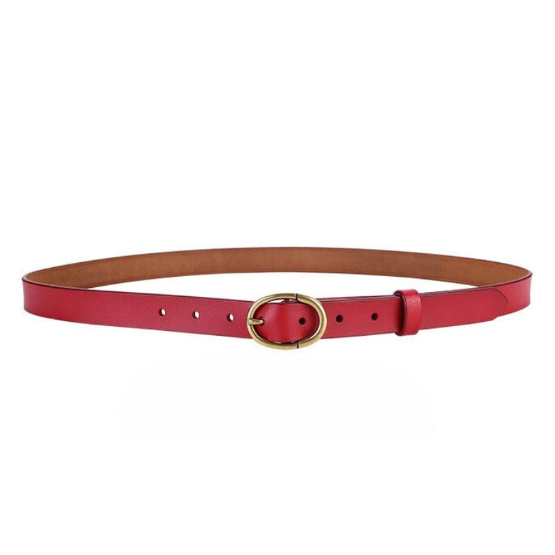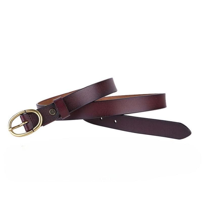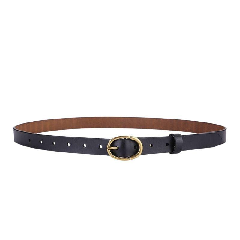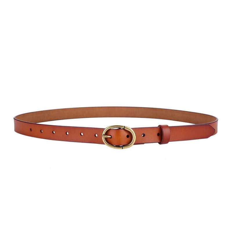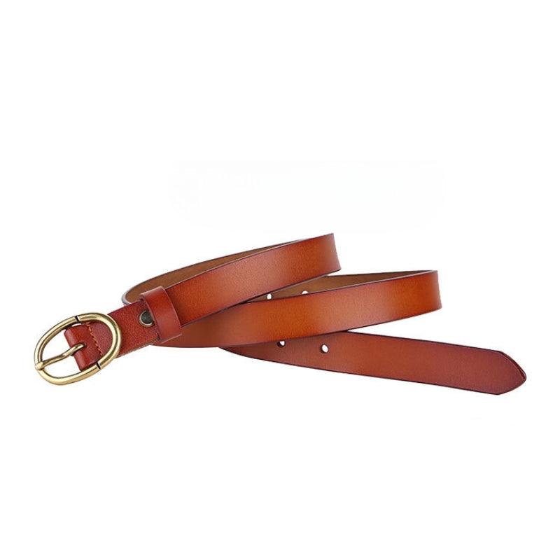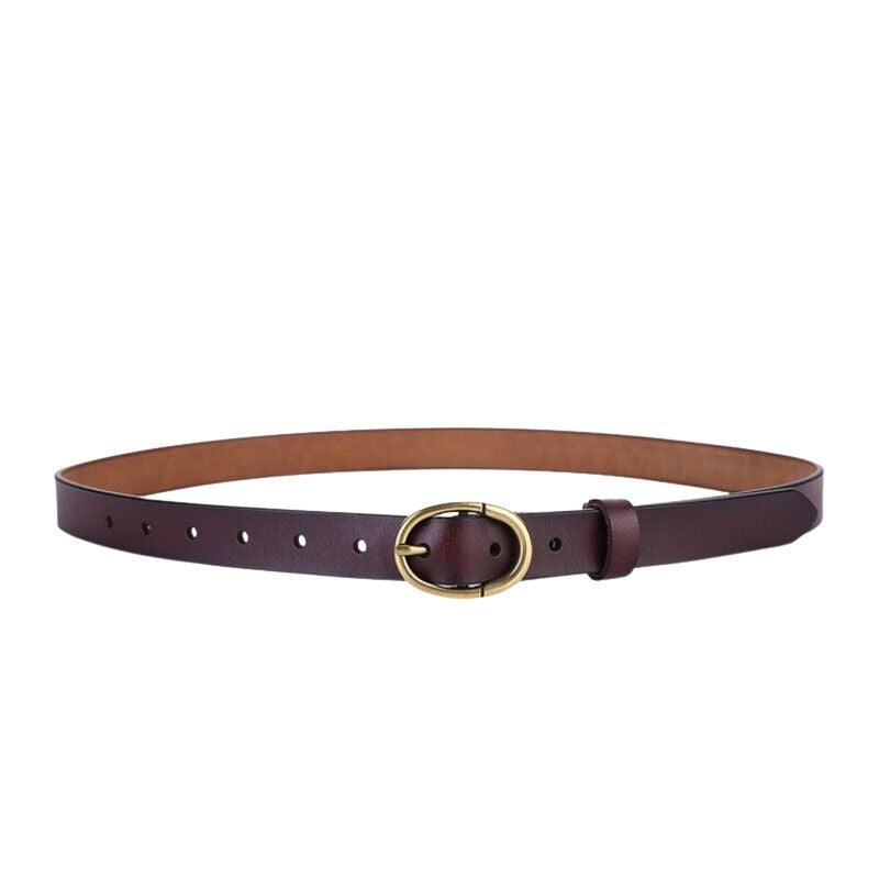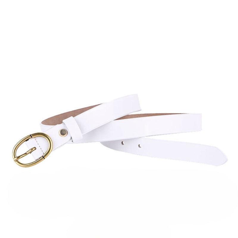 Cuir d’exception pour votre Ceinture en cuir lisse boucle ovale dorée Rétro pour femme, modèle Angela