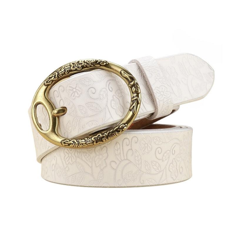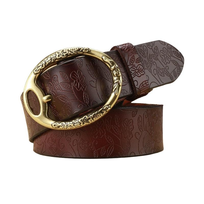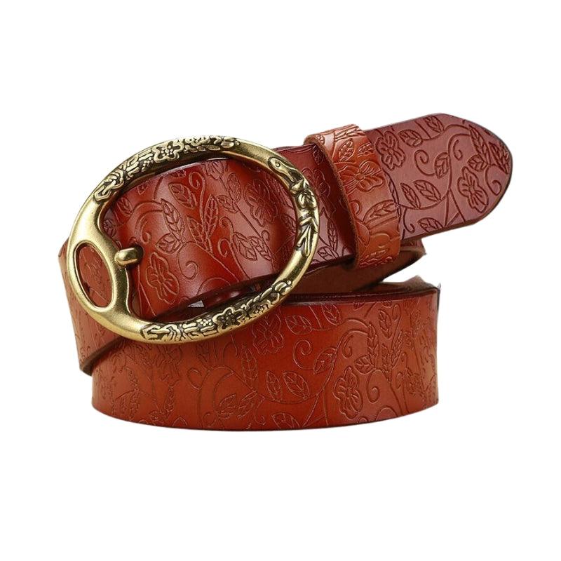 Découvrez la Ceinture en cuir look Bohème pour femme boucle ovale Fleurs, modèle Itotia sur Ma ceinture cuir !