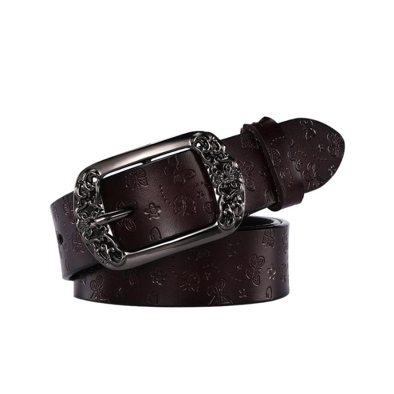 Osez avec la ceinture en cuir Papillons pour femme, boucle Florale, modèle Jasmine : l’accessoire versatile