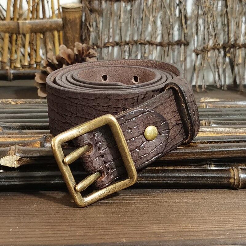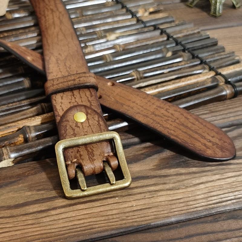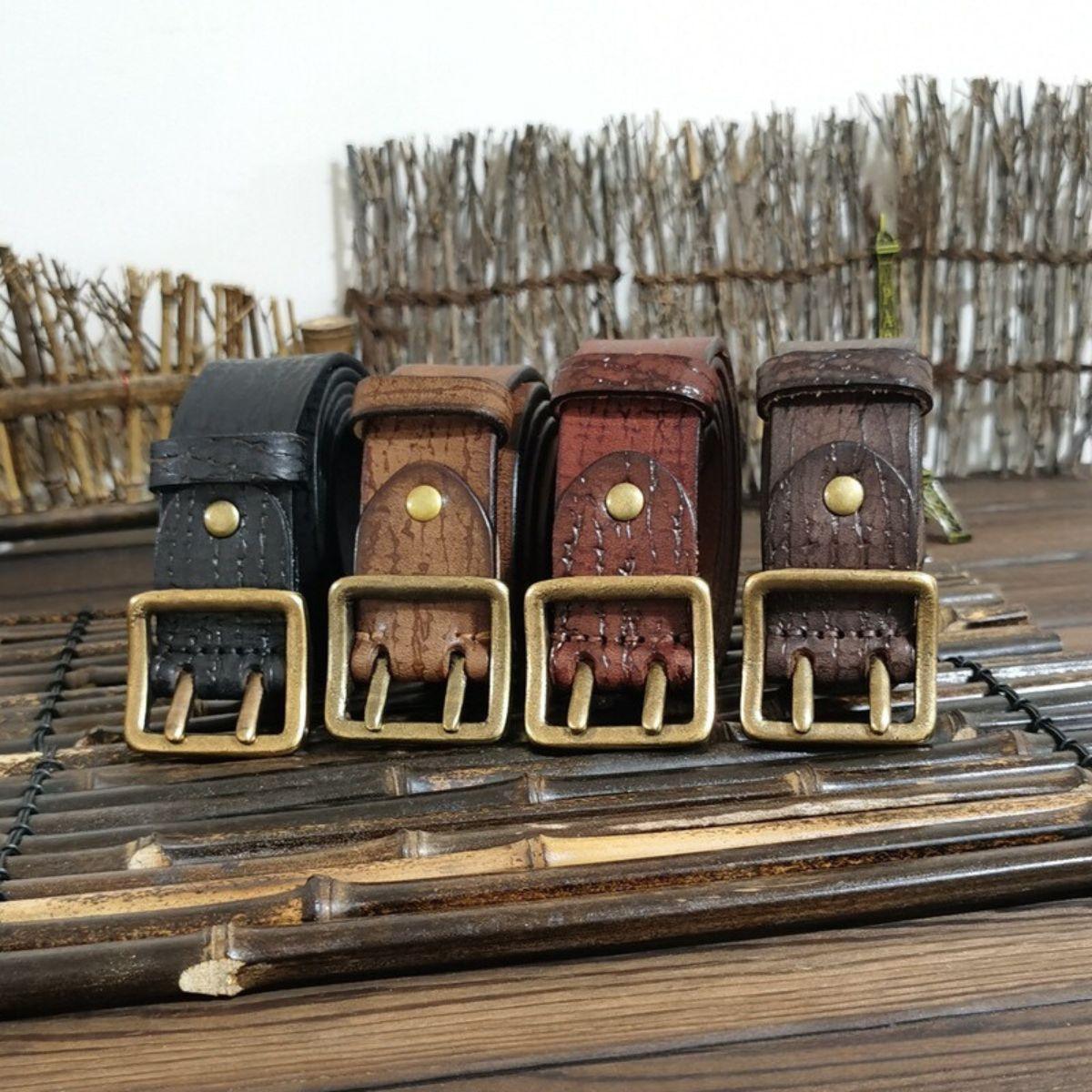 Le modèle Razisnei révèle votre personnalité singulière grâce à son aspect vieilli et tacheté, conférant à chaque ceinture un caractère unique. En choisissant cette ceinture, vous optez pour un accessoire qui raconte une histoire, enrichissant votre style par une touche personnelle et distinctive.
