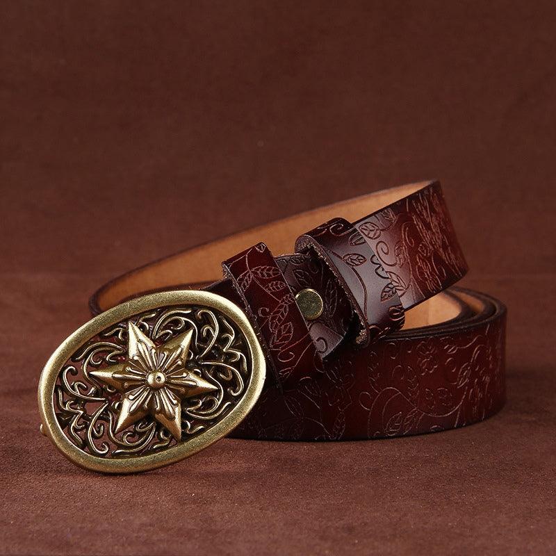 Ceinture en cuir style western pour femme, boucle Etoile, modèle Sanaa: Élégance et Charme