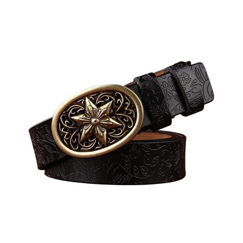Matériaux premium pour la ceinture en cuir style western pour femme, boucle Etoile, modèle Sanaa