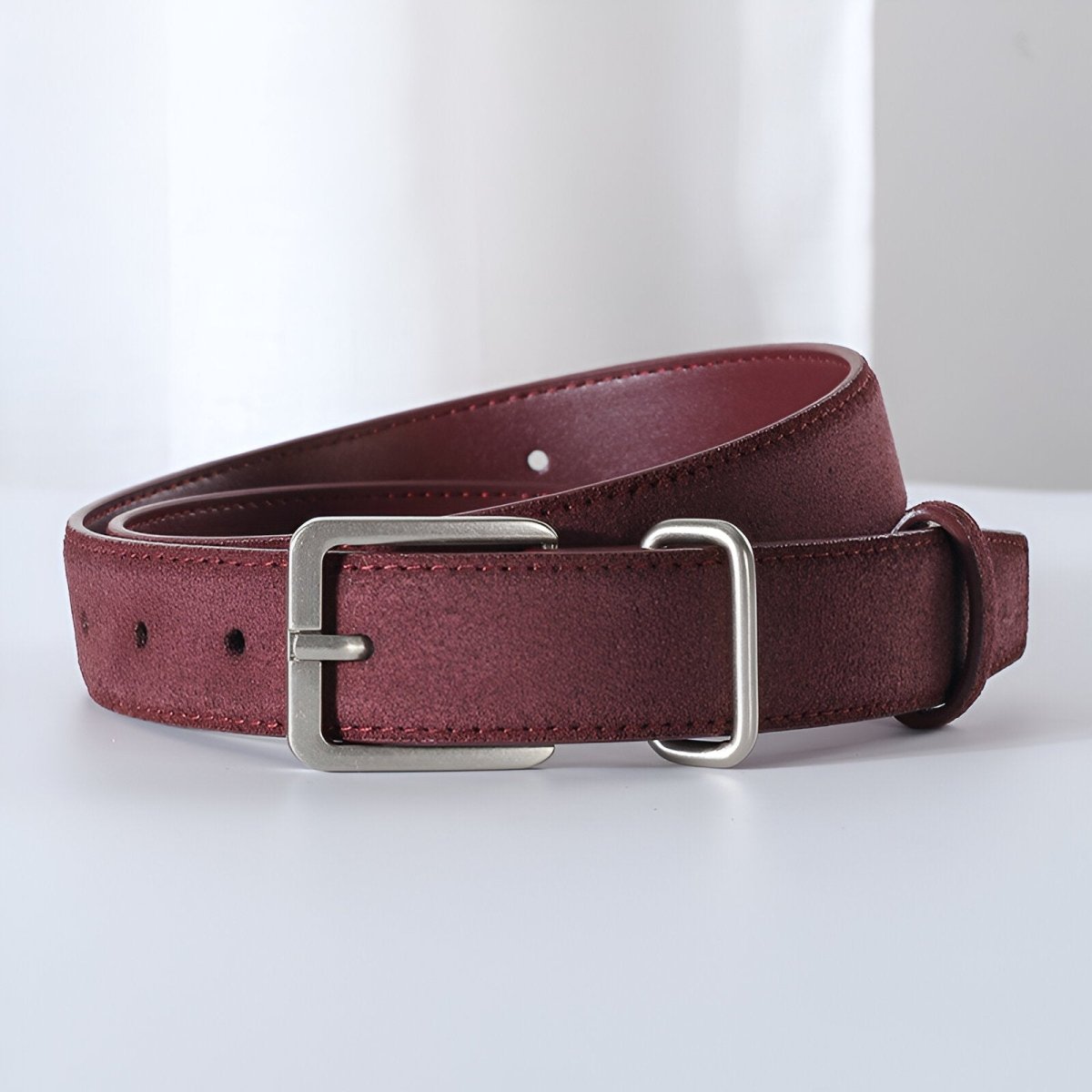 Fabriquée à partir de cuir véritable suédé, ce modèle de ceinture se distingue par sa longévité et sa résistance exceptionnelles. Ce choix de matériau noble assure non seulement une allure raffinée, mais offre également une sensation douce et agréable au toucher.