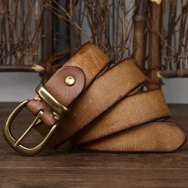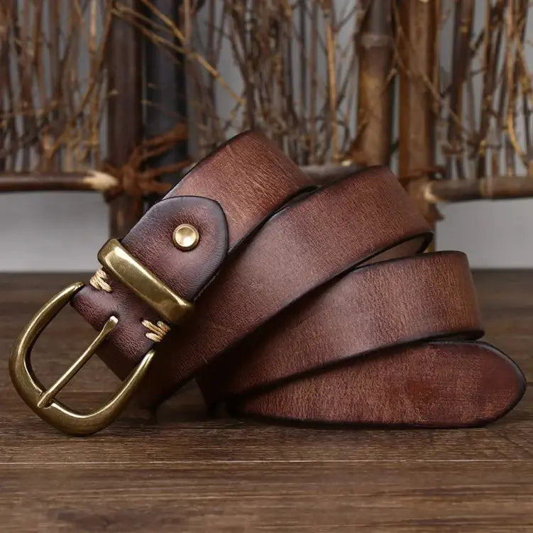 La finition soignée de chaque ceinture garantit une allure raffinée et distinguée. Chaque élément, des coutures à la boucle en cuivre, a été pensé pour offrir un produit durable de haute qualité qui ne laissera personne indifférent, sublimant n’importe quelle tenue par sa simple présence.