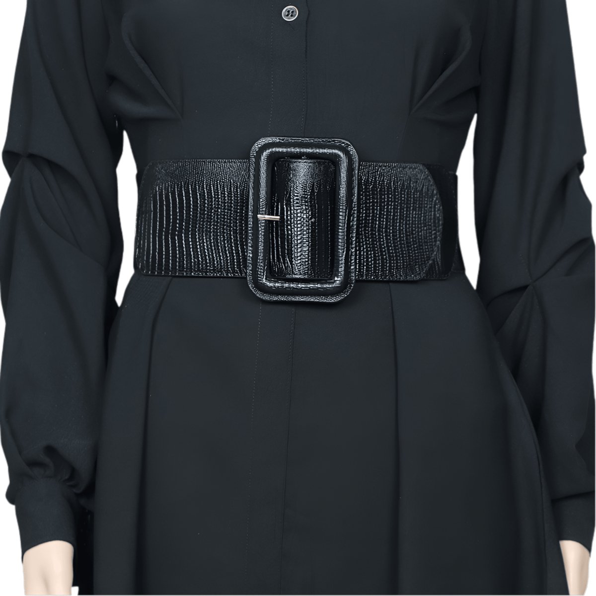 La Ceinture Extra Large XXL à taille élastique avec large boucle, modèle Abby, allie élégance et praticité. Son design large apporte non seulement du style mais offre également un confort inégalé. Elle est idéale pour toute occasion, qu’il s’agisse d’une sortie décontractée ou d’une soirée chic.