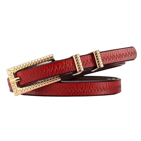 Découvrez la ceinture fine en cuir motifs Zigzag pour femme, modèle Suzy, élégance et confort assurés.