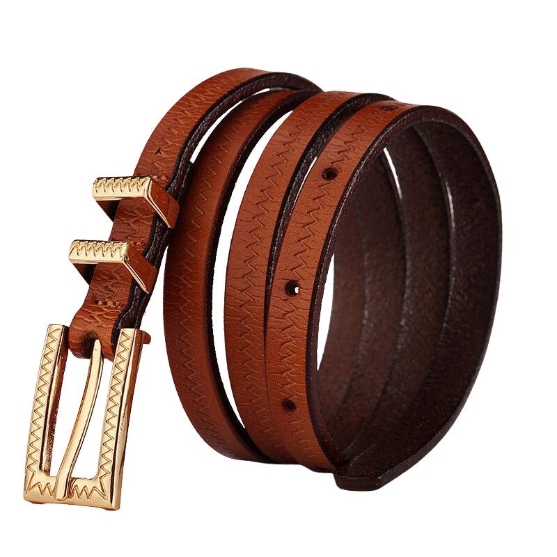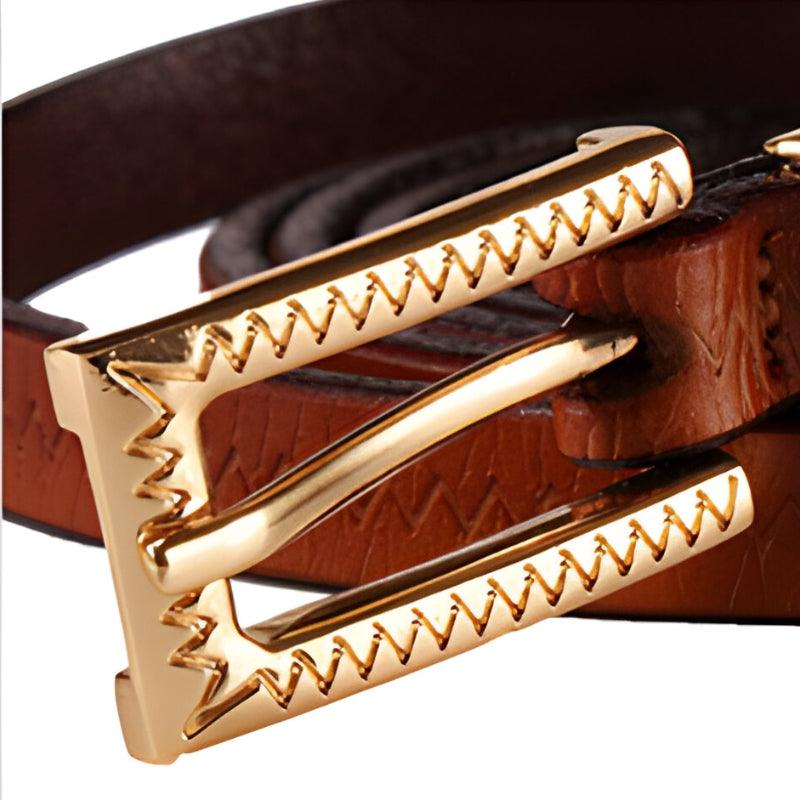 Ceinture fine en cuir motifs Zigzag pour femme, modèle Suzy : qualité et design