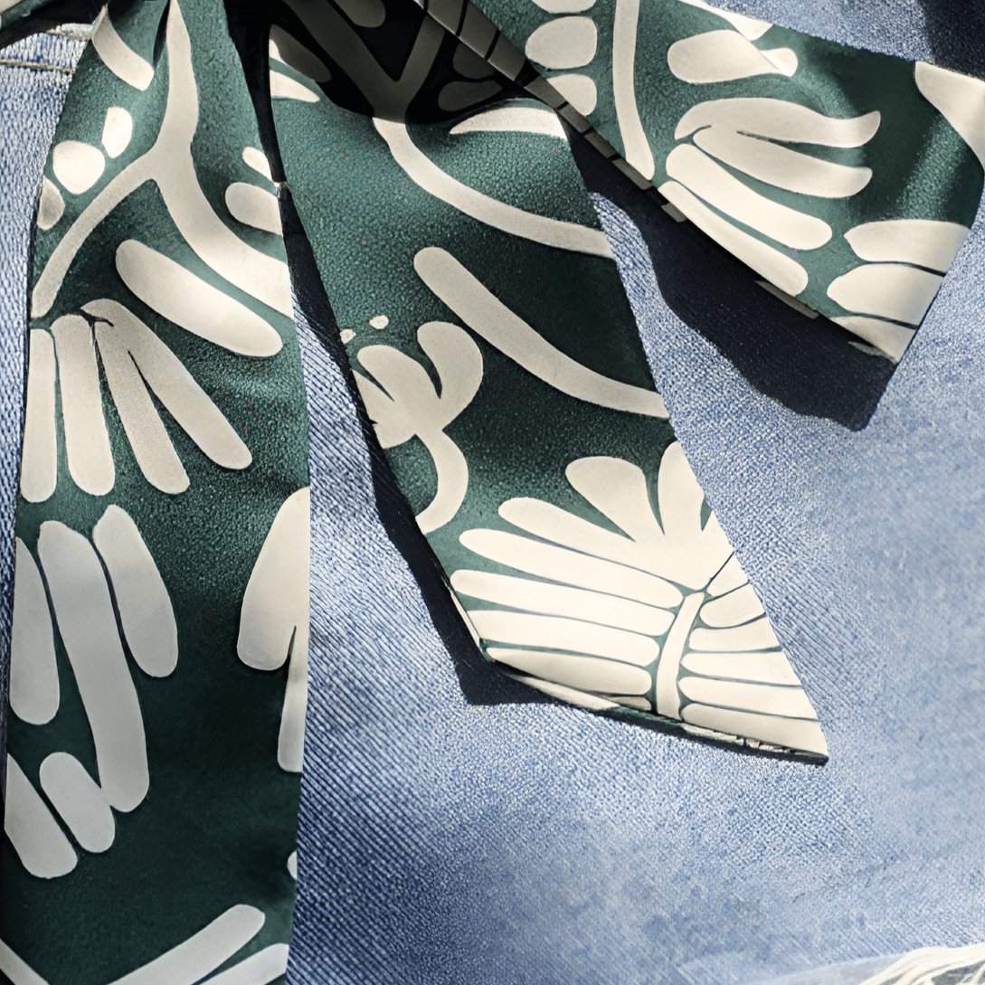 La polyvalence de la ceinture foulard, à motif tropical, modèle Thelcunia