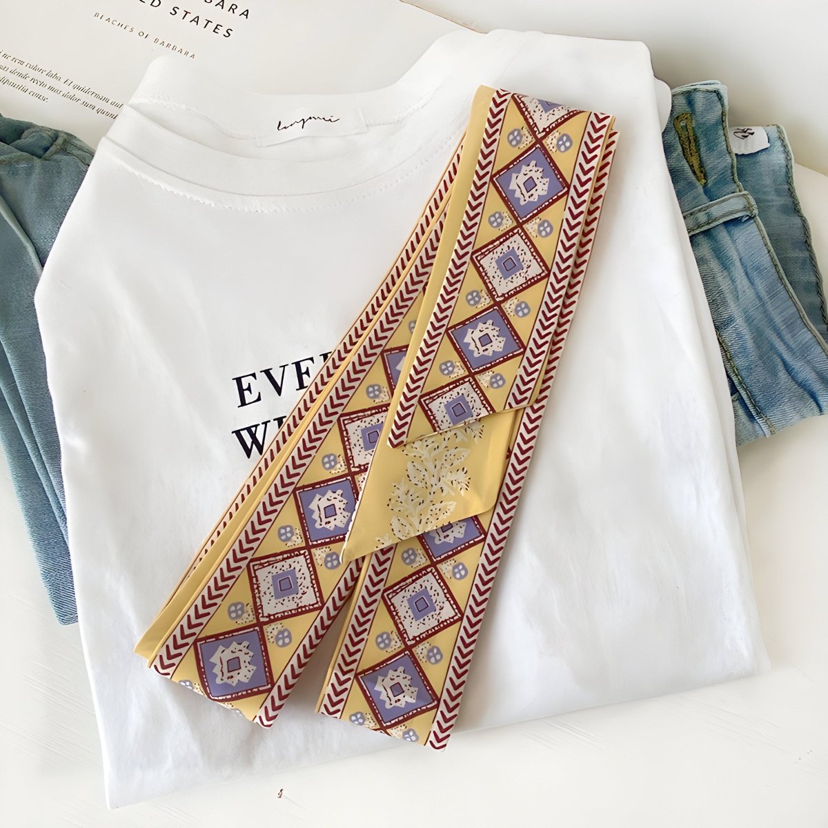 Comment porter la Ceinture foulard, à motifs carreaux abstraits, modèle Borra au quotidien
