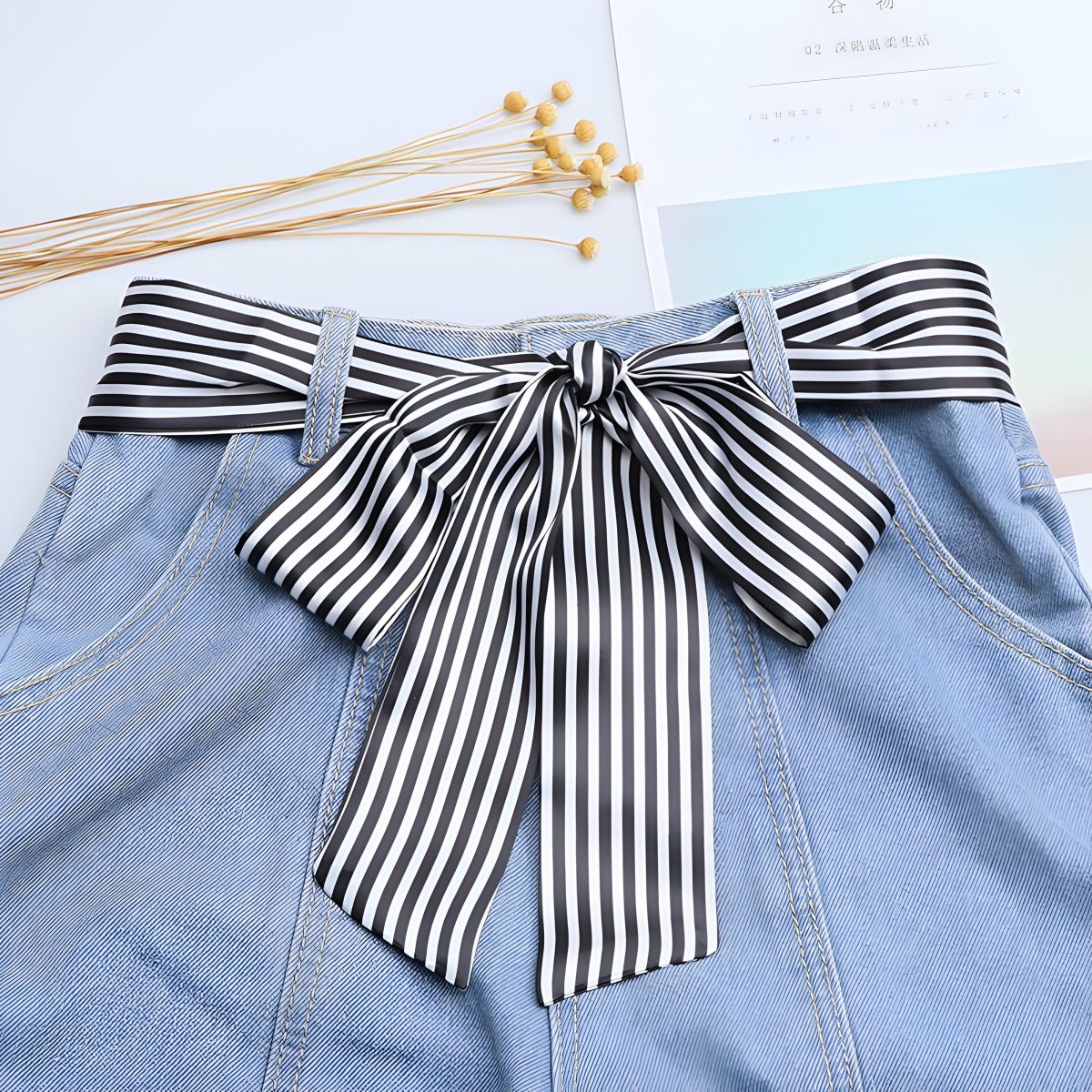 Découvrez la polyvalence du modèle Capano : Ceinture foulard à rayures blanches et noires