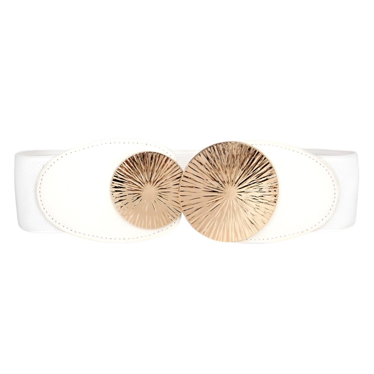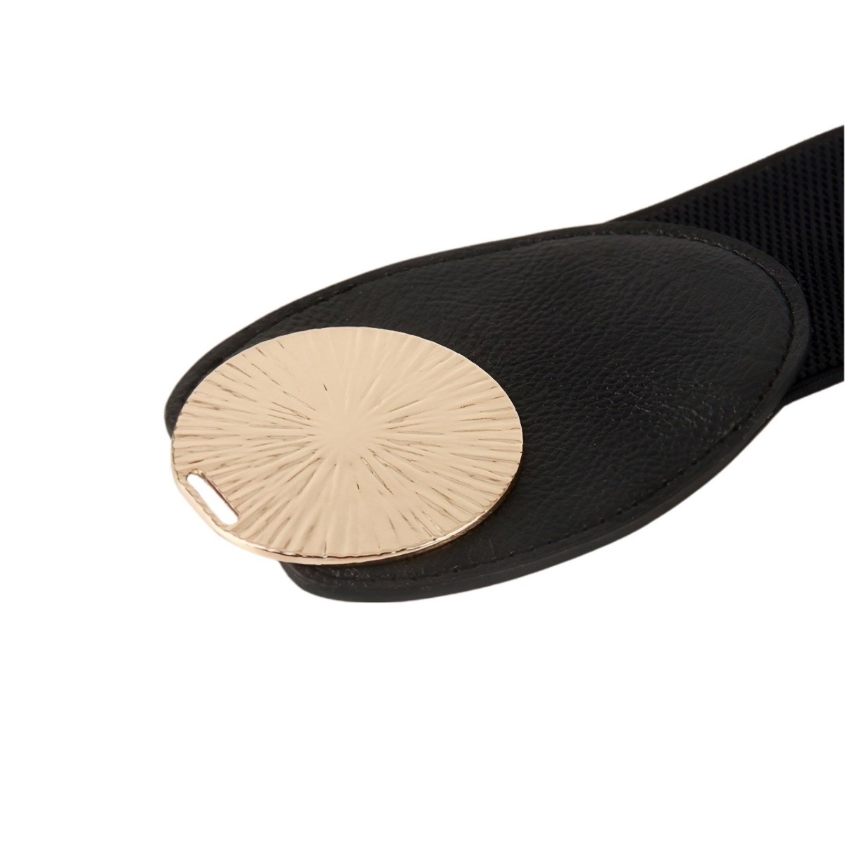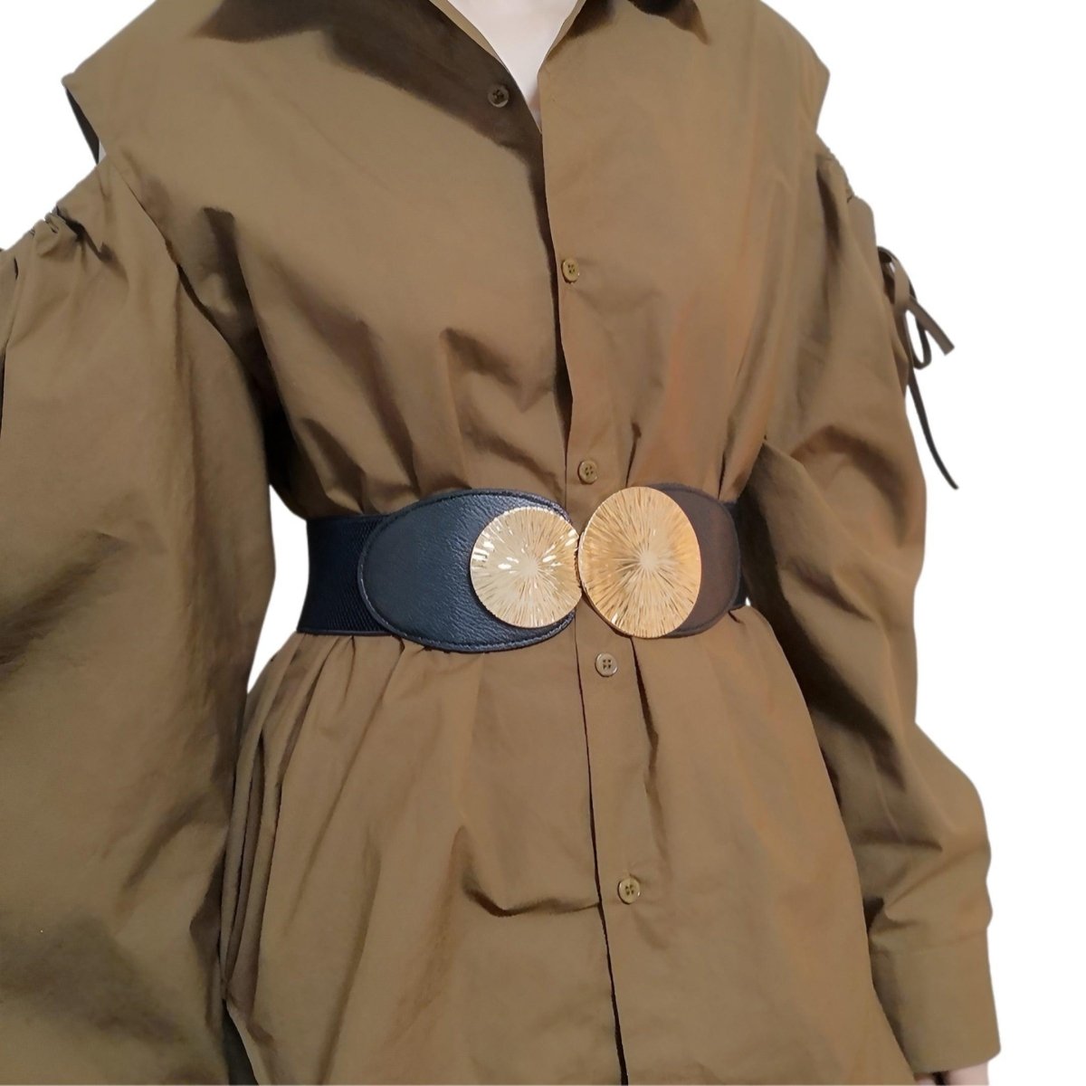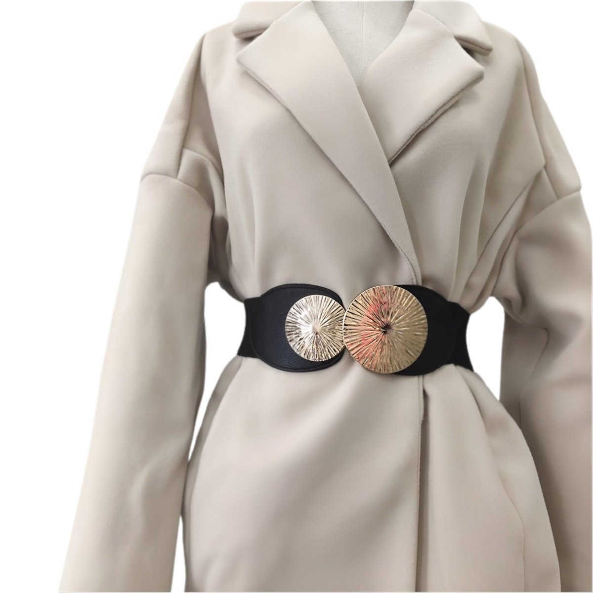 Misez sur l’audace avec la Ceinture Large à motif grand cercle doré, modèle Débora