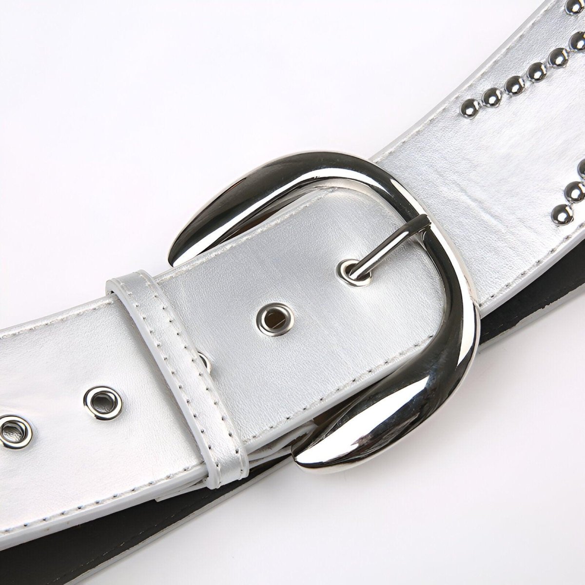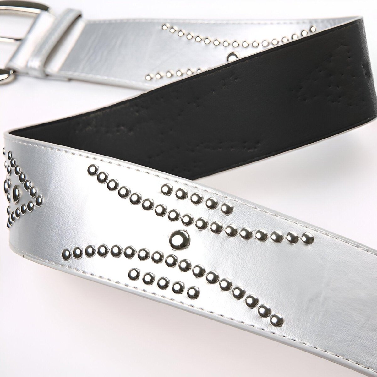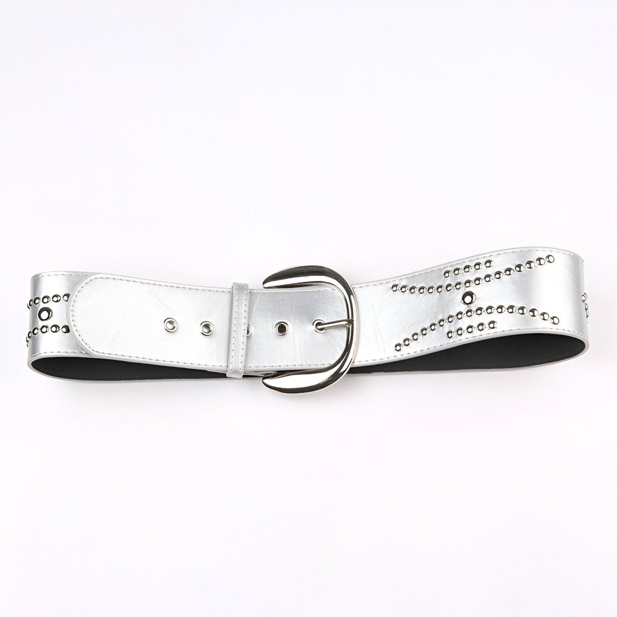 Élégance audacieuse avec la Ceinture large argentée à rivets, modèle Illona