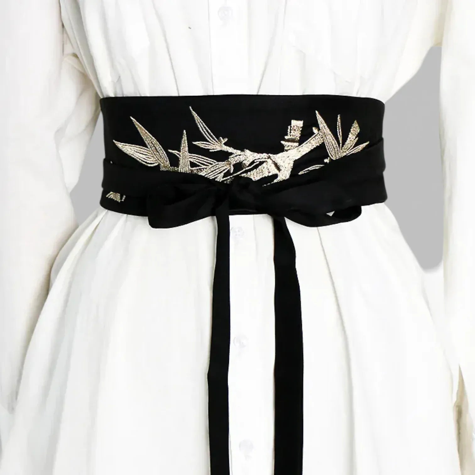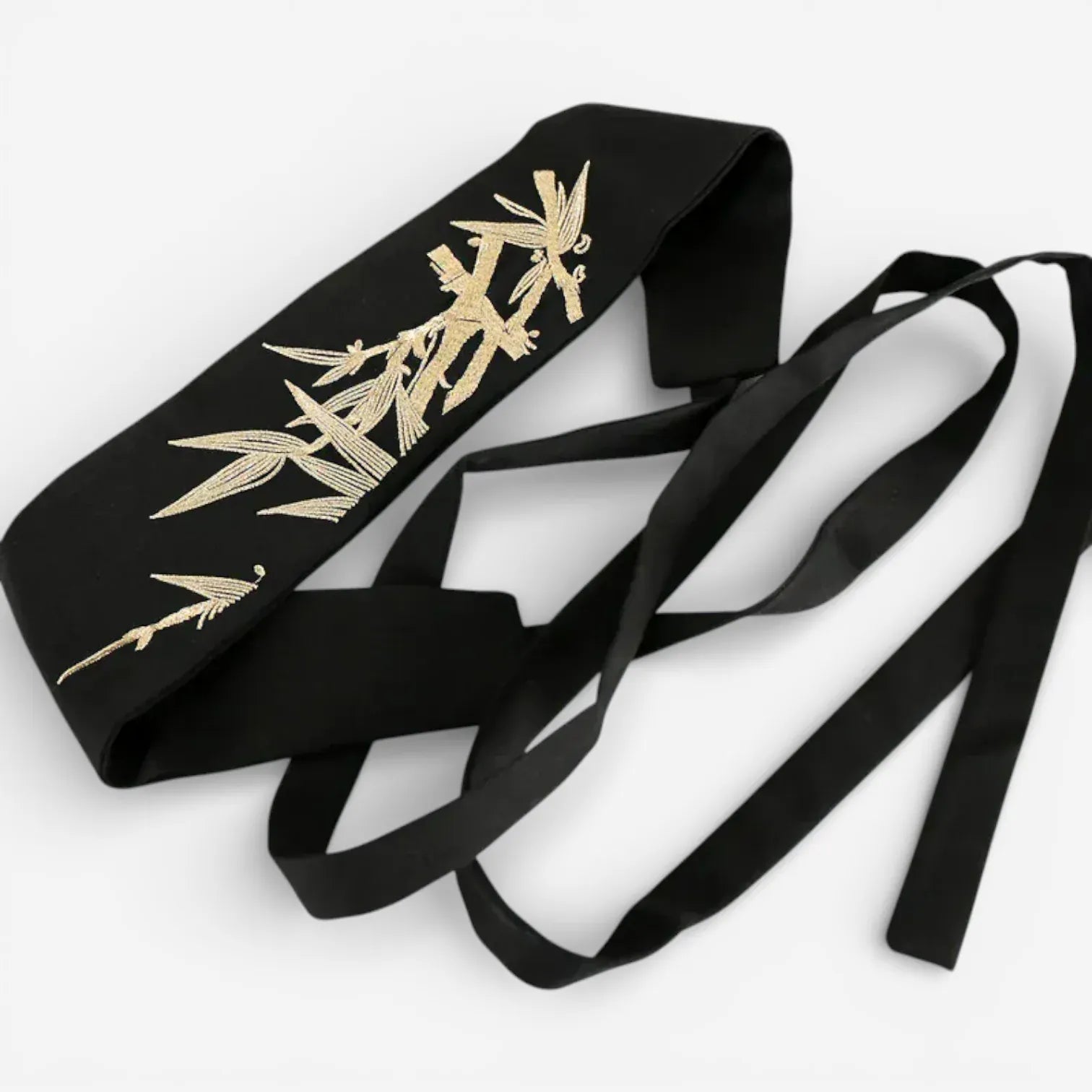 Grâce à sa fabrication en tissu noir brodé d’inspiration japonaise, la ceinture Akemi n’est pas seulement un accessoire, mais une véritable œuvre d’art. Elle offre une expérience de mode immersive, rendant hommage aux artisans textiles d’Asie tout en sublimant vos looks les plus raffinés.