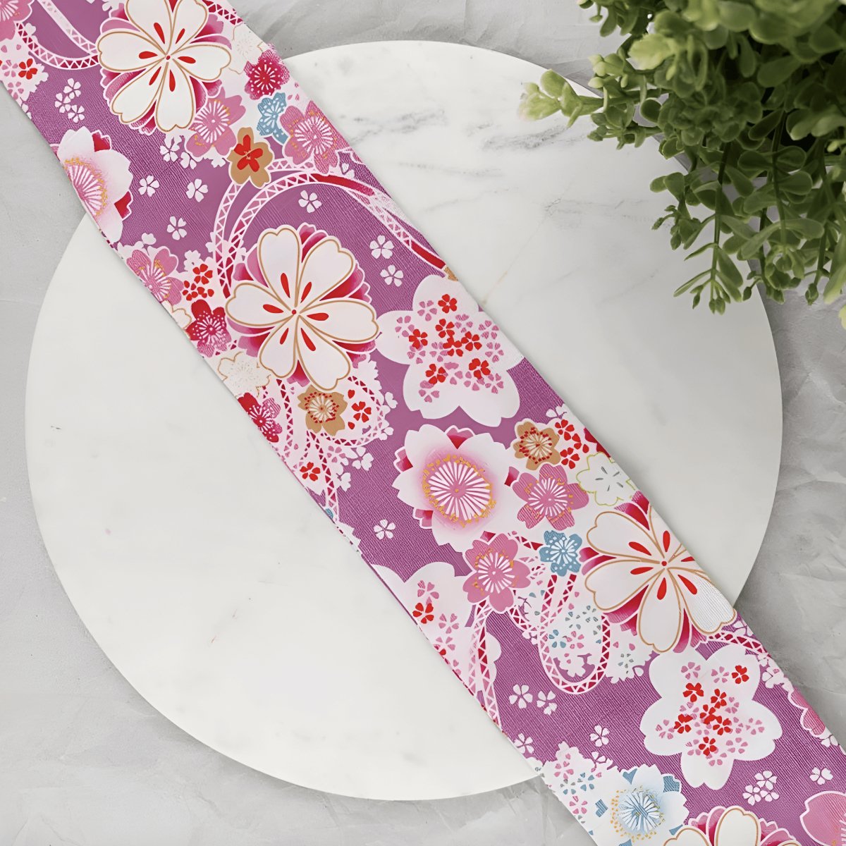 Le modèle Yuro de cette ceinture Obi rose à motifs fleurs de printemps est une ode à la nature en éclosion. Chaque motif floral est soigneusement dessiné pour rappeler la beauté éphémère du printemps, offrant à votre garde-robe une dimension supplémentaire. Les fleurs de ce motif vibrant appellent à la vitalité et à la fraîcheur.