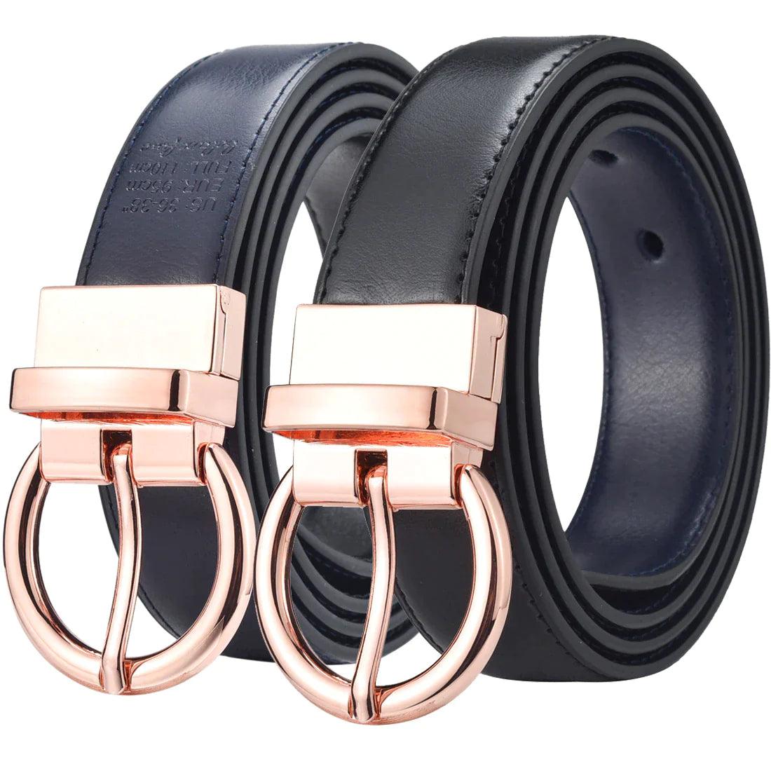 Ceinture réversible 2 en 1 en cuir, boucle or rosé, modèle Chloé : l’élégance au quotidien