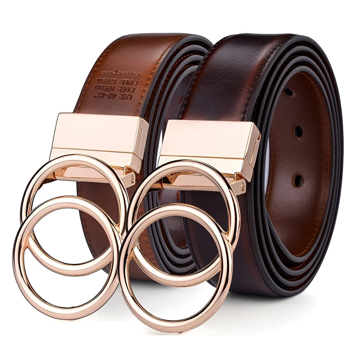 Ceinture réversible en cuir 2 en 1 pour femme, modèle Lena avec double anneau torsadé. Élégance garantie!