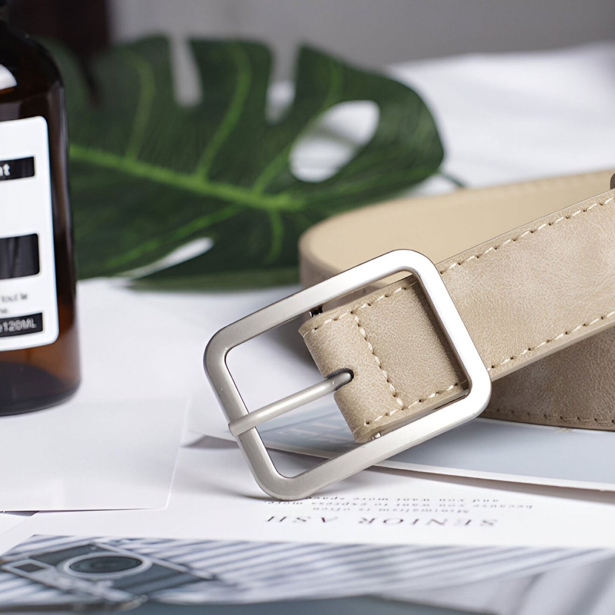 Qualité et élégance avec la ceinture tendance à boucle rectangulaire, modèle Sybil