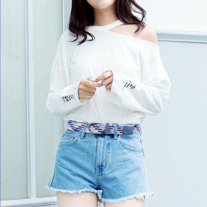 Une Ceinture tressée élastique pour femme, modèle Silvana aux couleurs originales