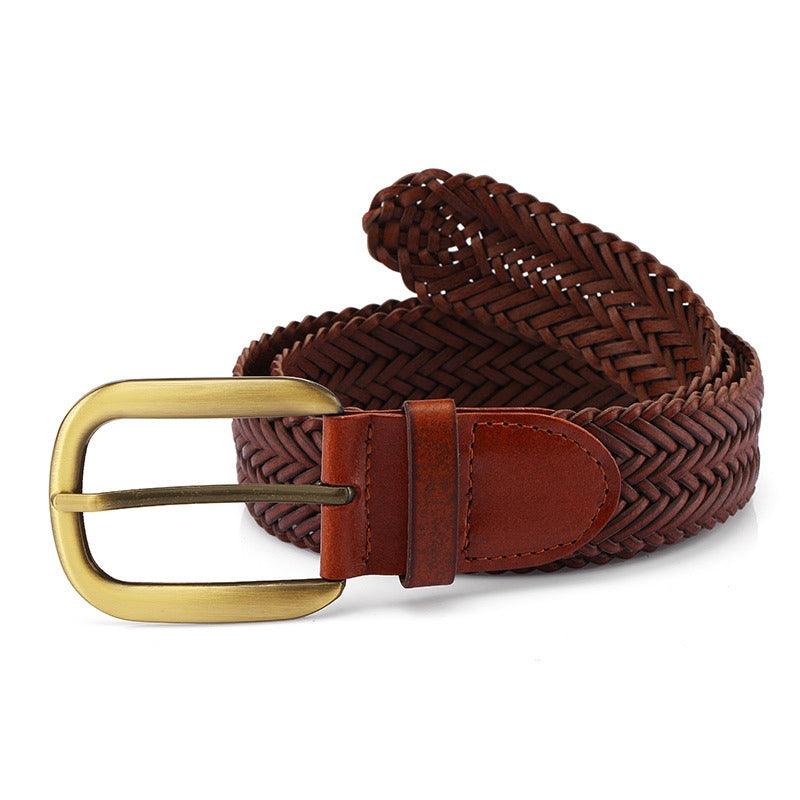 Adoptez le style avec ce modèle de ceinture tressée en cuir pour femme boucle dorée, modèle Nancy