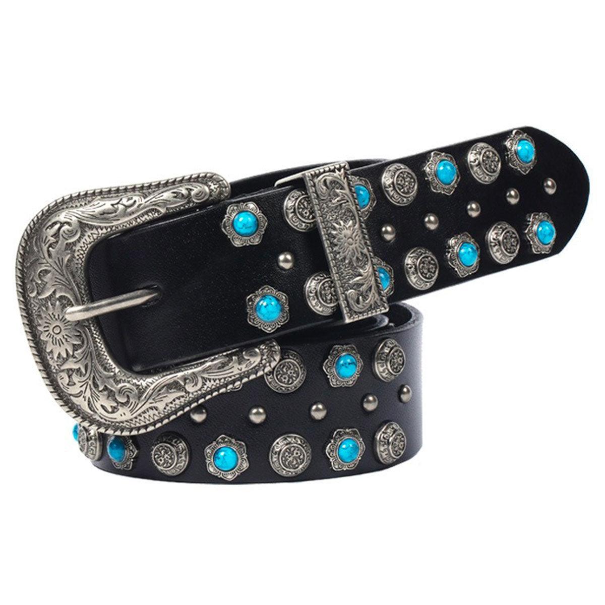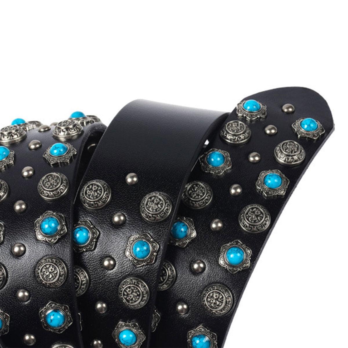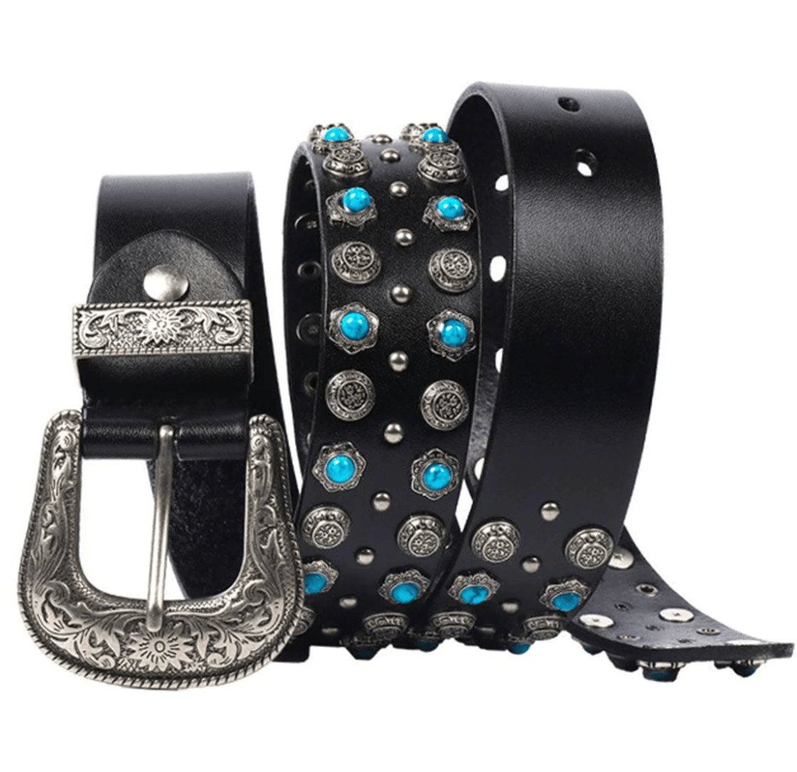 La Ceinture Western à Rivets et Turquoises Incrustées, modèle Freda : une touche de caractère pour chaque garde-robe