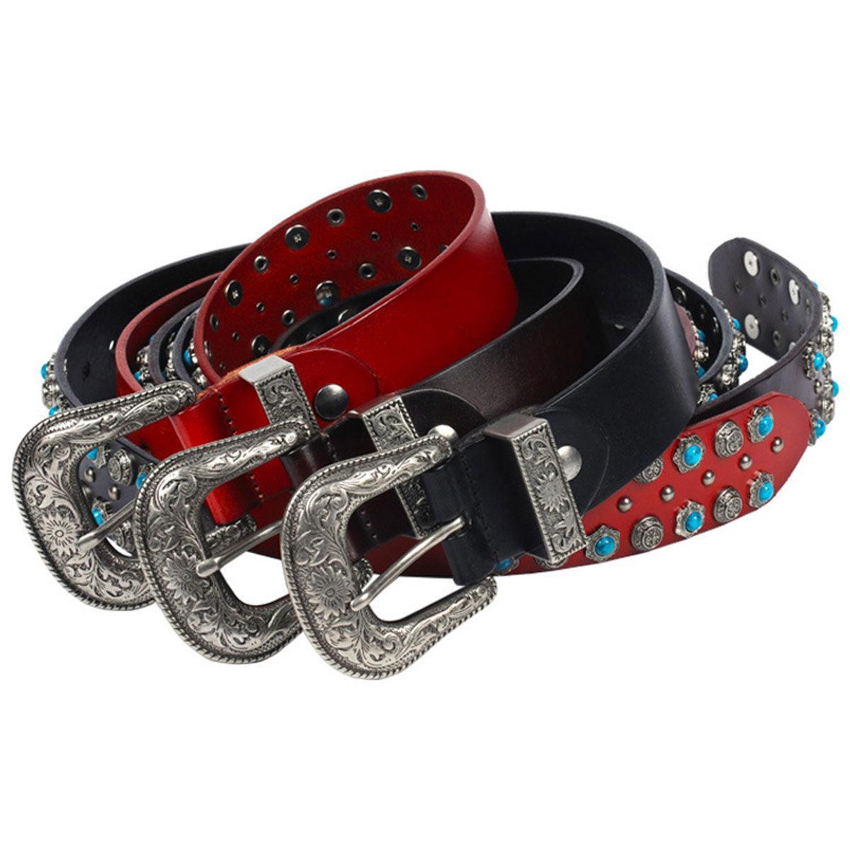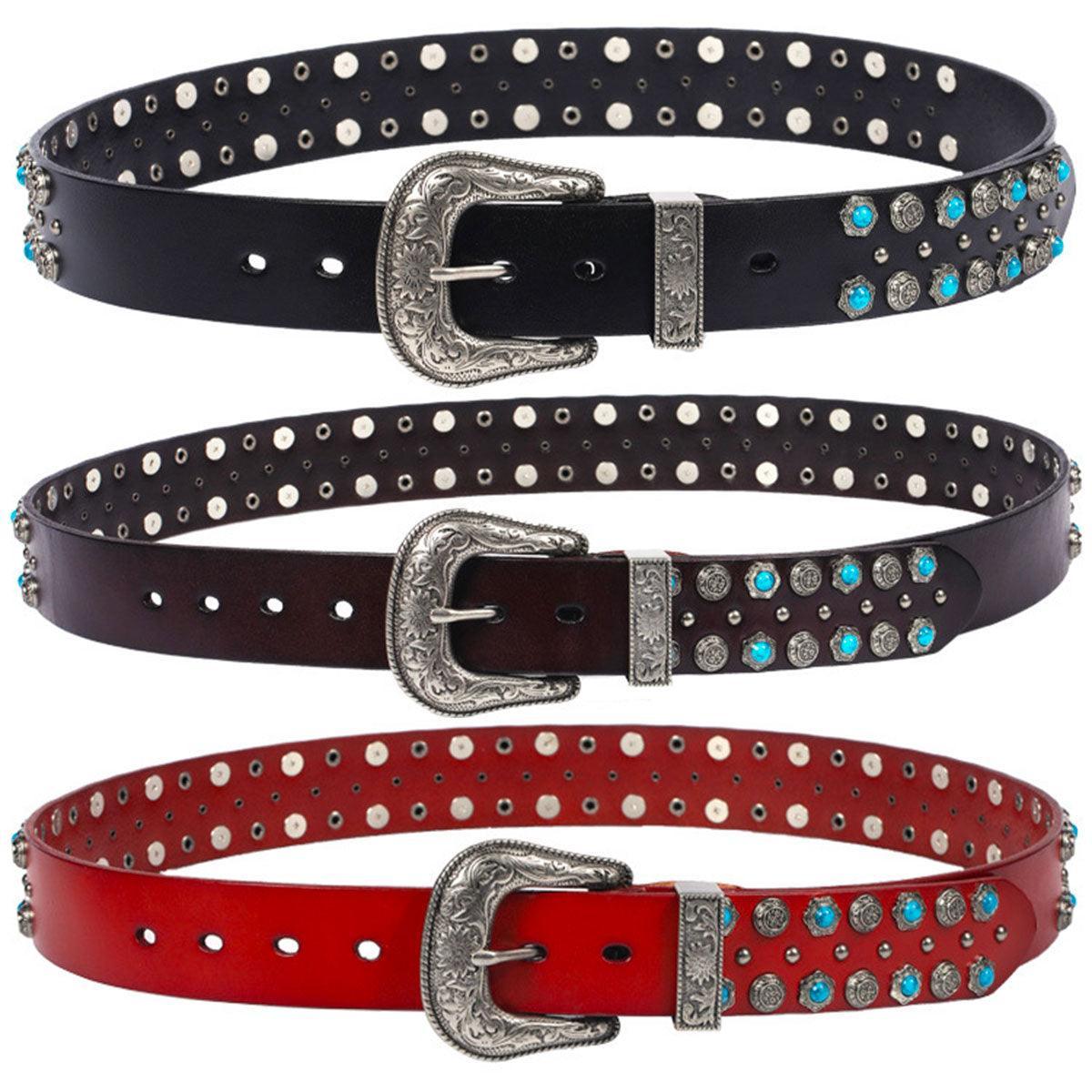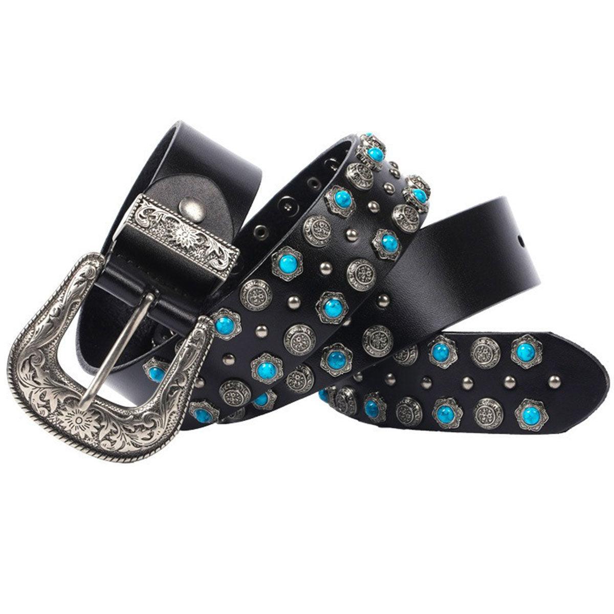 La Ceinture Western à Rivets et Turquoises Incrustées, modèle Freda : une touche de caractère pour chaque garde-robe