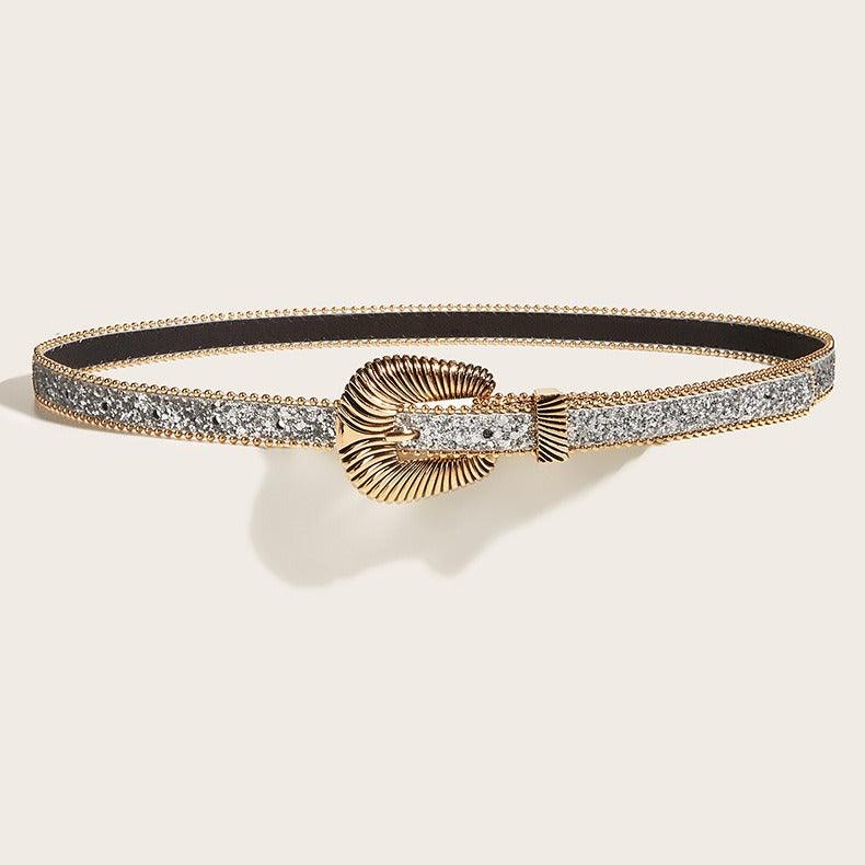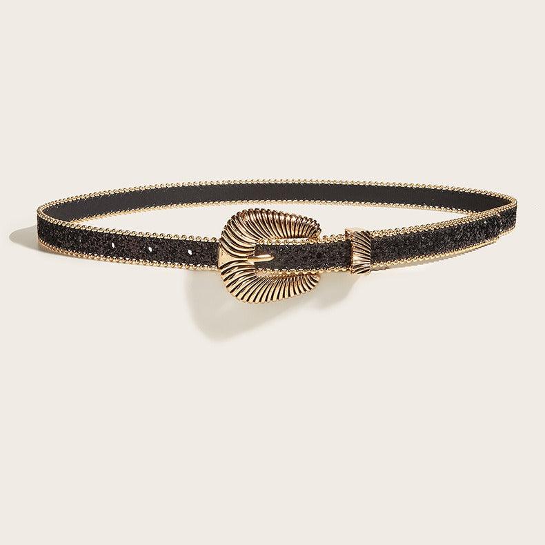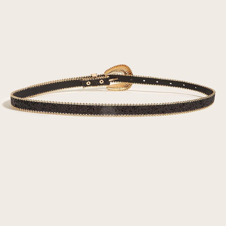 Découvrez la Ceinture Western à Strass avec Boucle Dorée et Striée, modèle Yerema, qui sublime votre silhouette. Cet accessoire de mode reflète une élégance intemporelle en alliant style western et détails raffinés. Sa boucle dorée et striée ajoute une touche de sophistication, idéale pour celles et ceux qui souhaitent se démarquer.