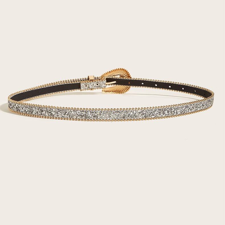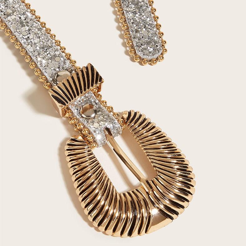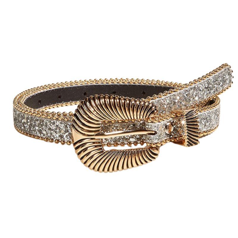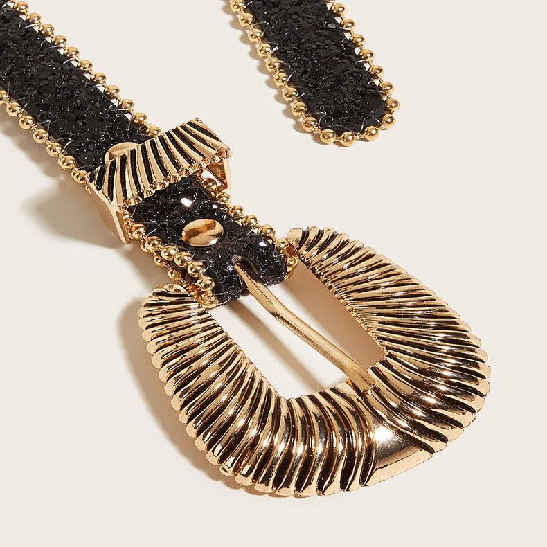 Ceinture Western à Strass avec Boucle Dorée et Striée, modèle Yerema, un style unique