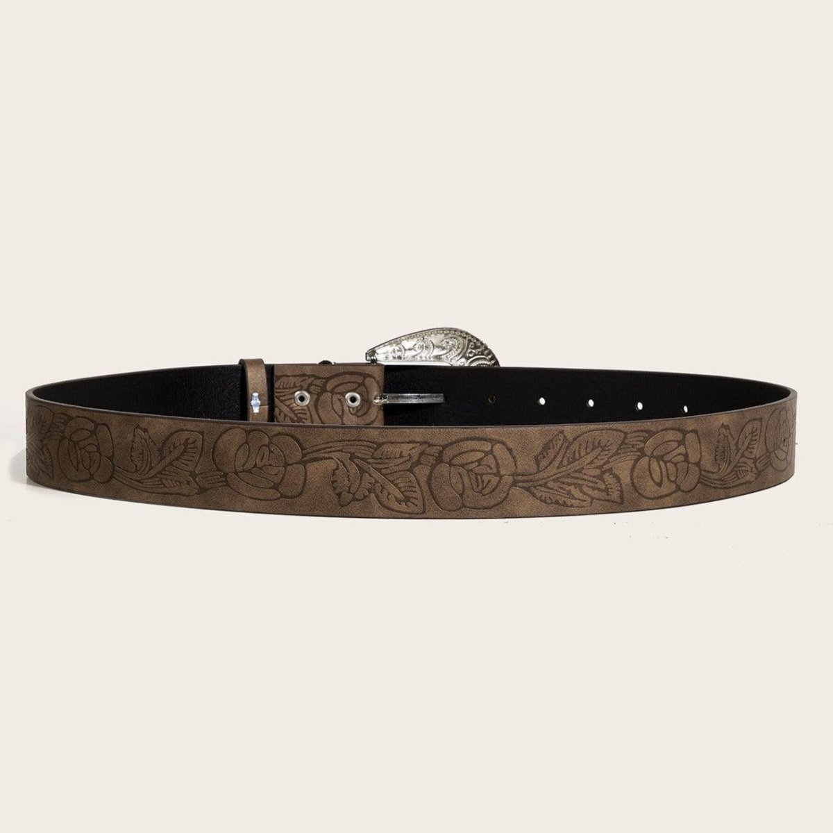 Porter la ceinture Western avec motifs floraux, modèle Nali, c’est choisir un accessoire qui se démarque par son design singulier. Les motifs floraux délicatement gravés ajoutent une touche artistique et féminine à votre tenue. Cette ceinture vous accompagne au quotidien, ajoutant une dimension authentique et raffinée à votre style.