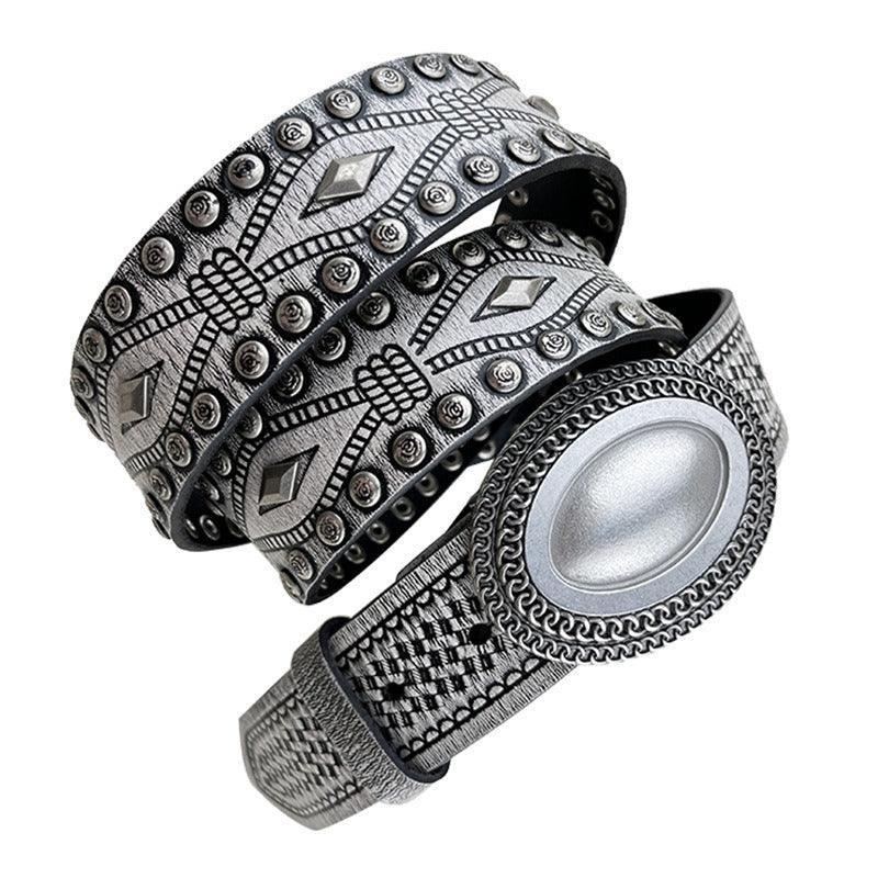 La précision de l’artisanat se reflète dans chaque motif gravé de cette ceinture. Avec son look vintage, elle inspire une élégance naturelle qui attire les regards. Que vous la portiez pour une occasion spéciale ou au quotidien, elle s’adapte à toutes les situations avec classe et confort.