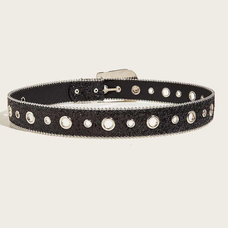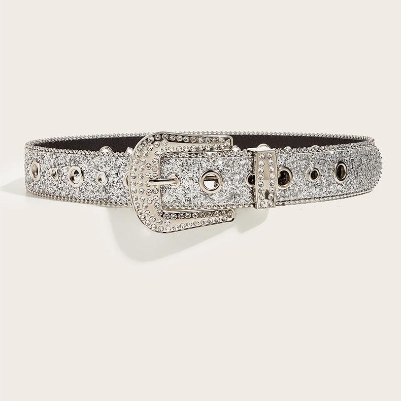 Adoptez la mode avec la Ceinture Western Pailletée et Boucle Strass Briella