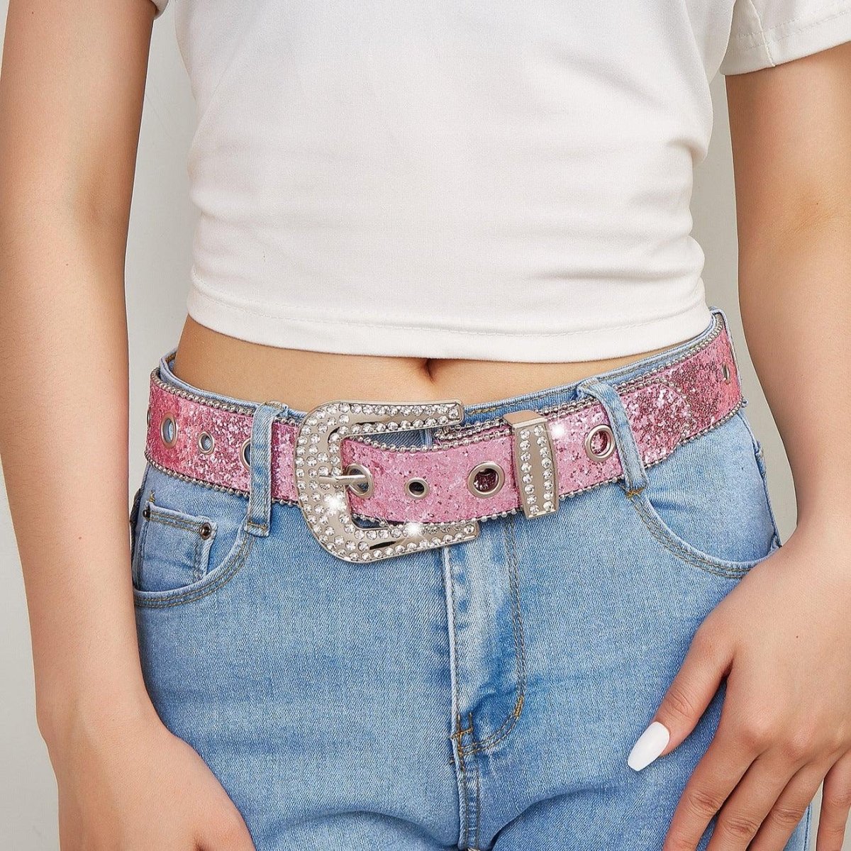 Découvrez la Ceinture Western Pailletée avec Boucle Strass, modèle Briella